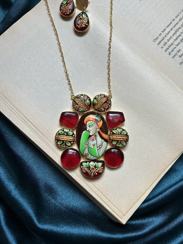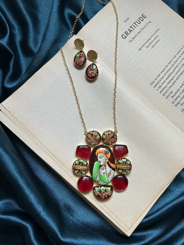 Long Tanjore Painting Ruby Necklace Set With Earrings