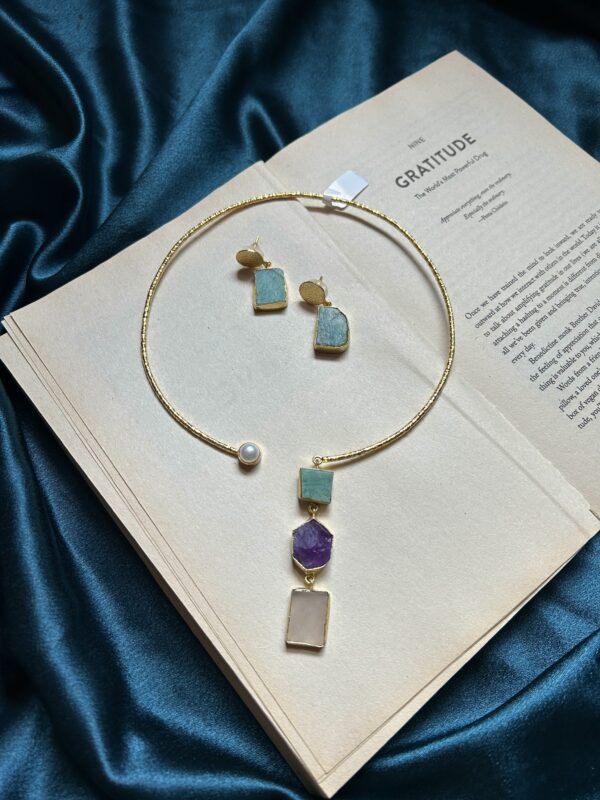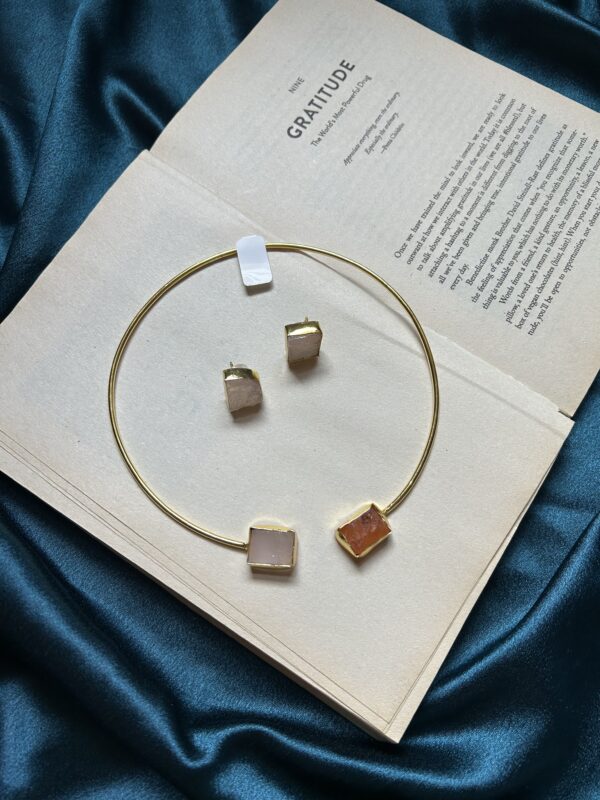 Brass Druzy Stone Hasli With Studs – Orange Pink