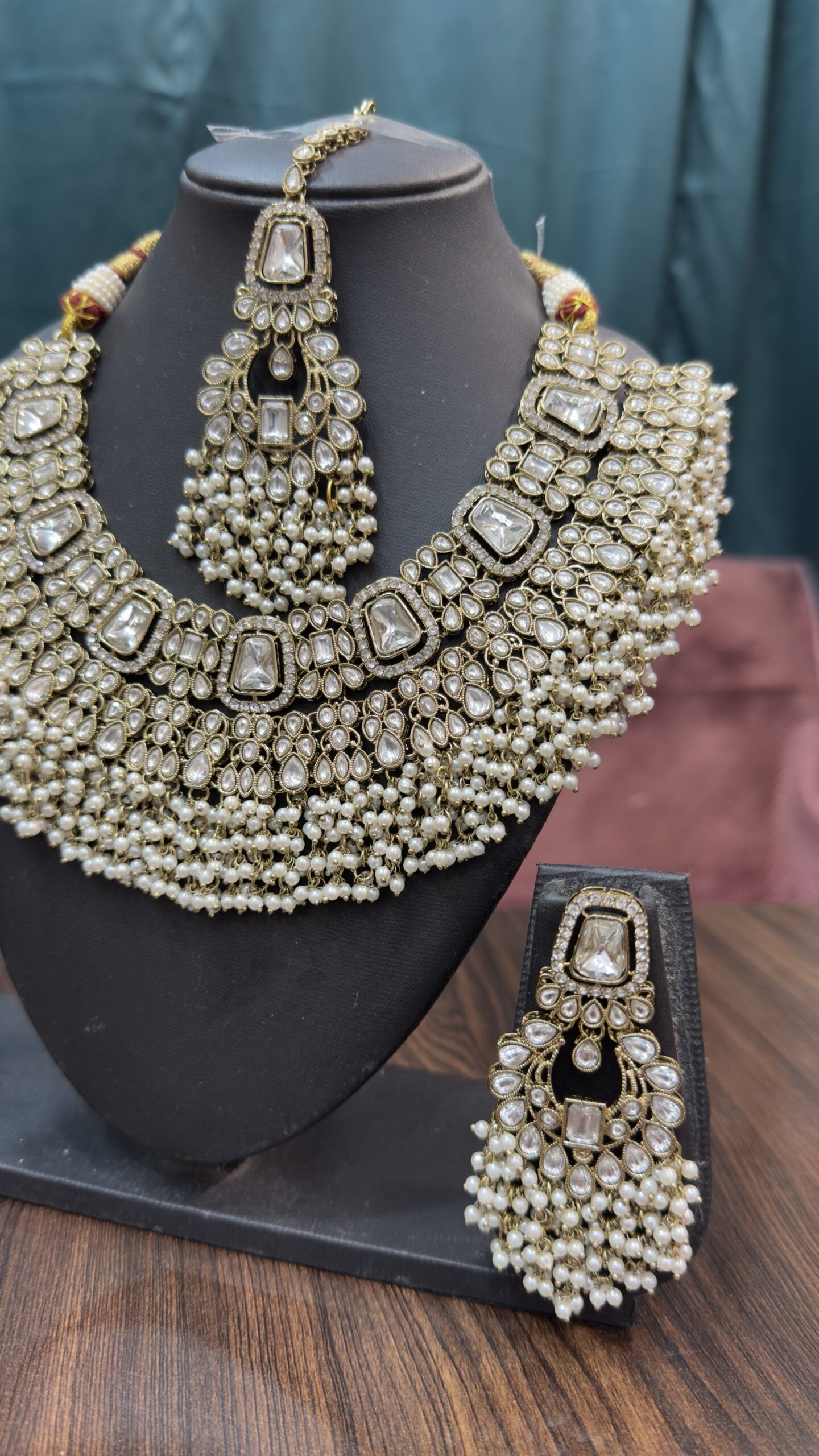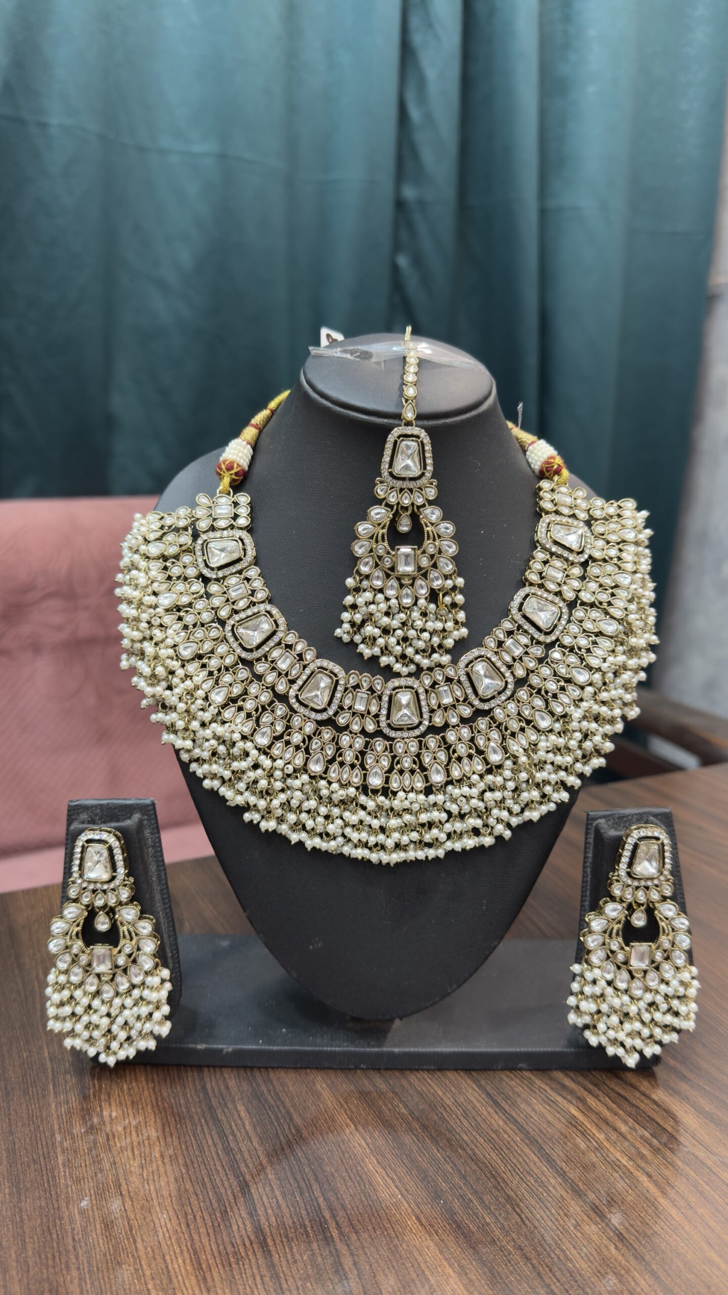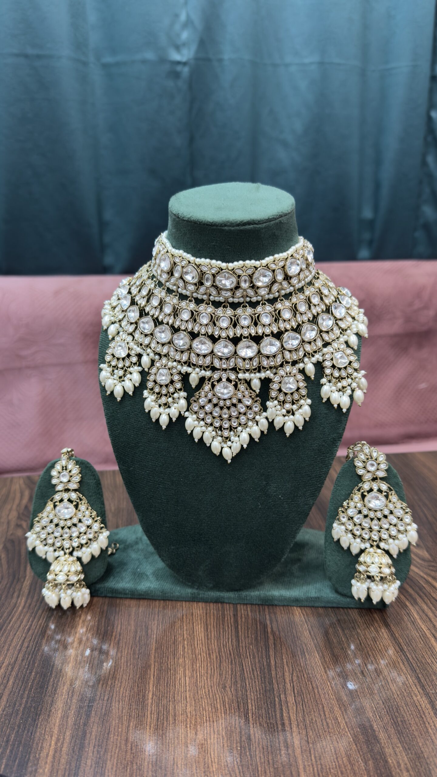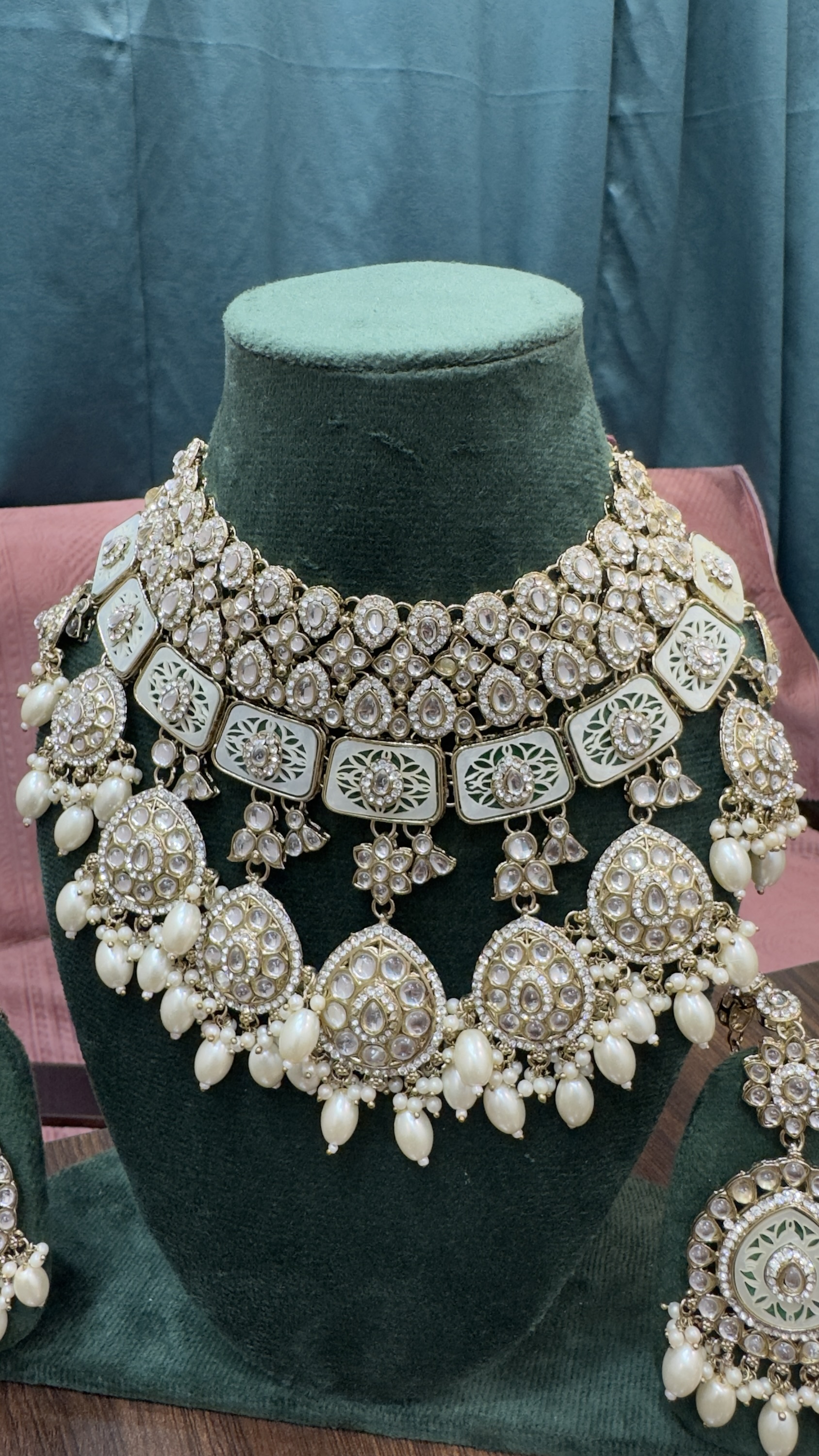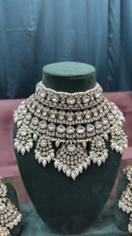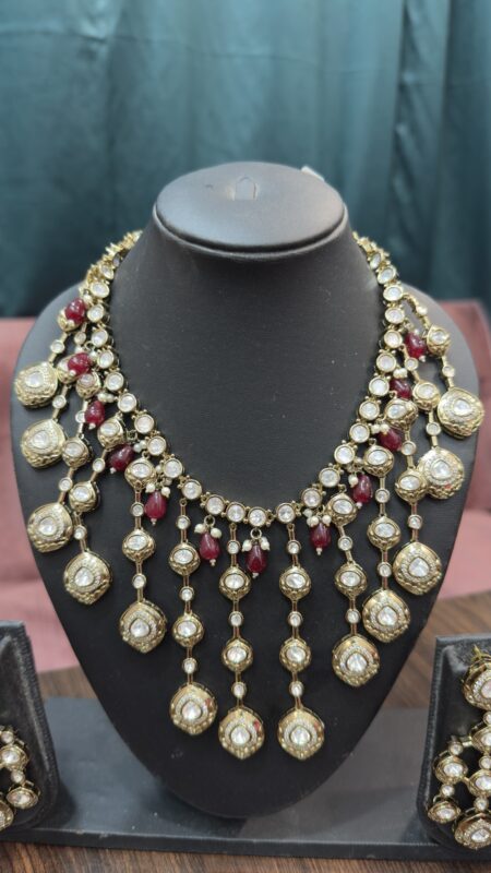 Long Polki Pearl Necklace Set With Earrings