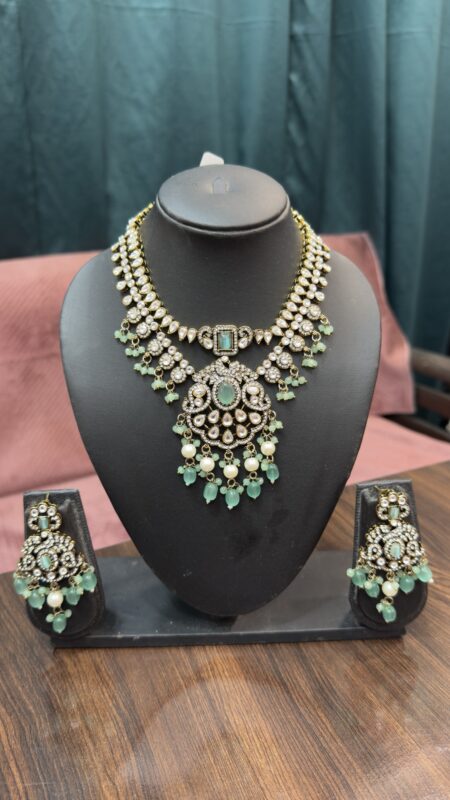 Tyani kundan Necklace Set With Earrings – Green