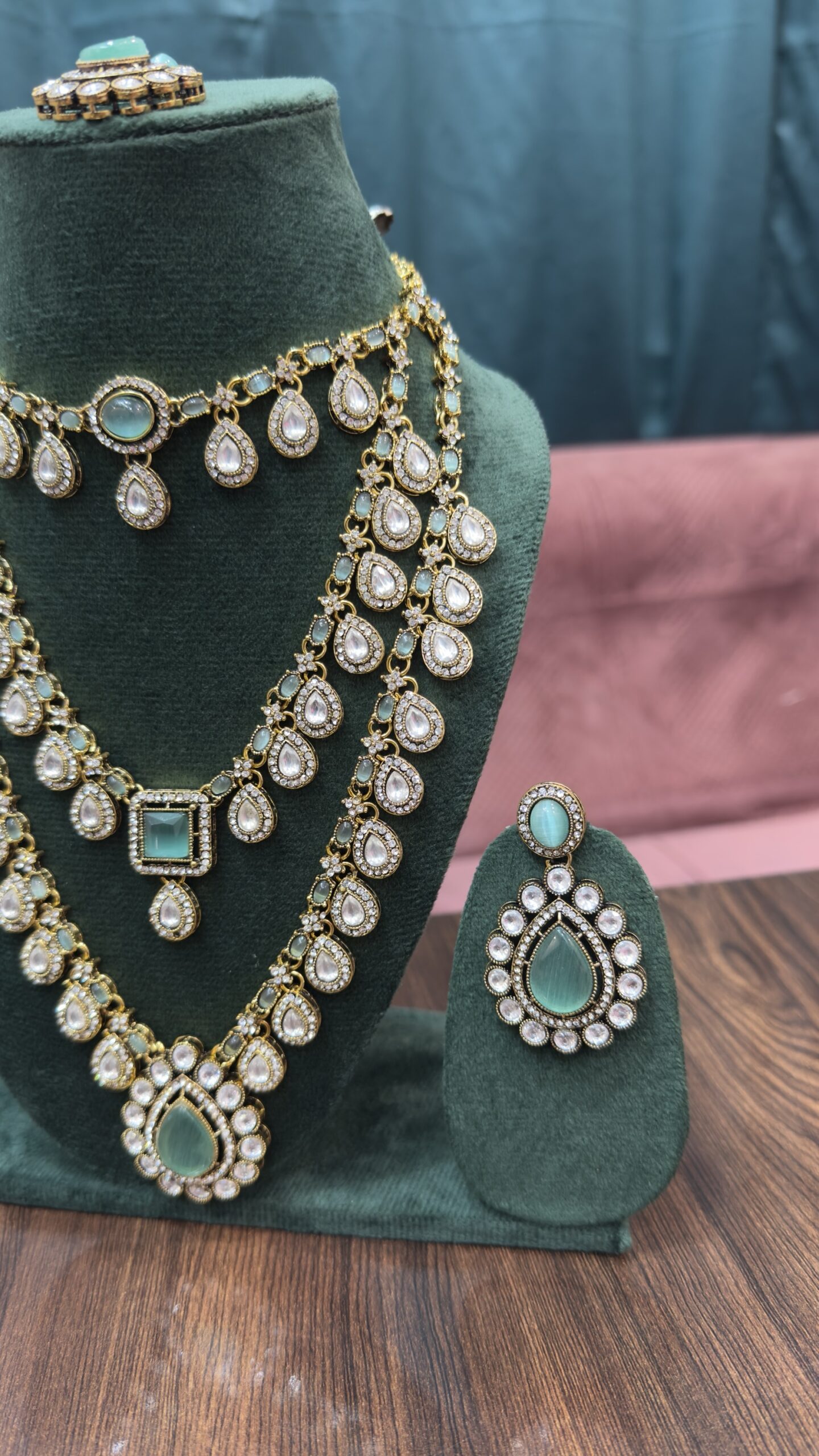 AD 2 Layer Necklace Set – Green
