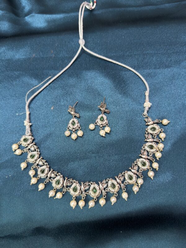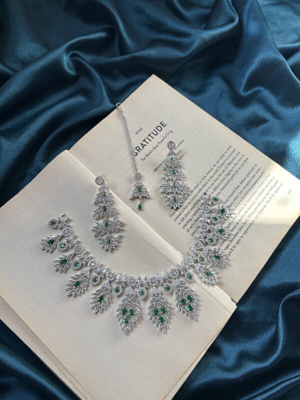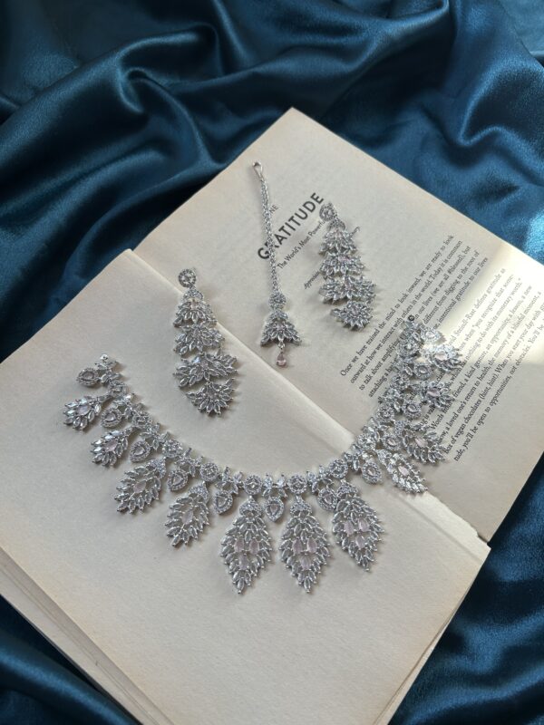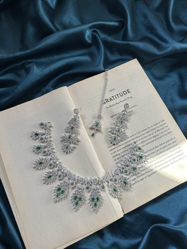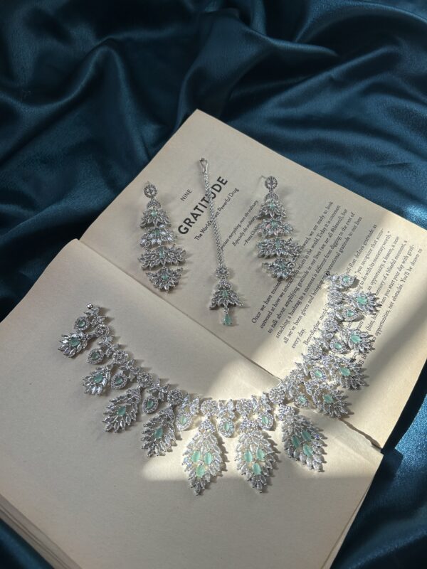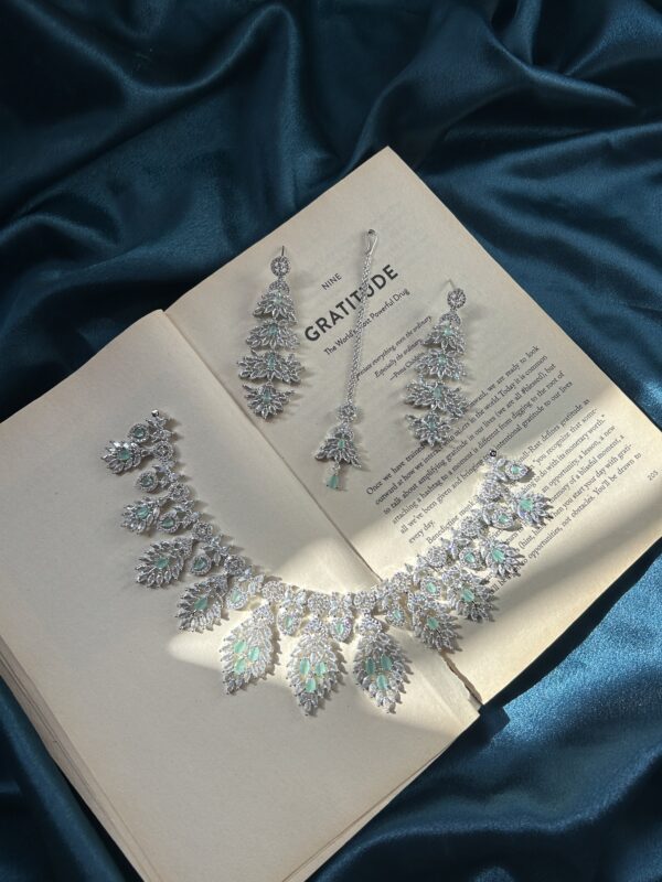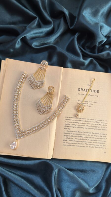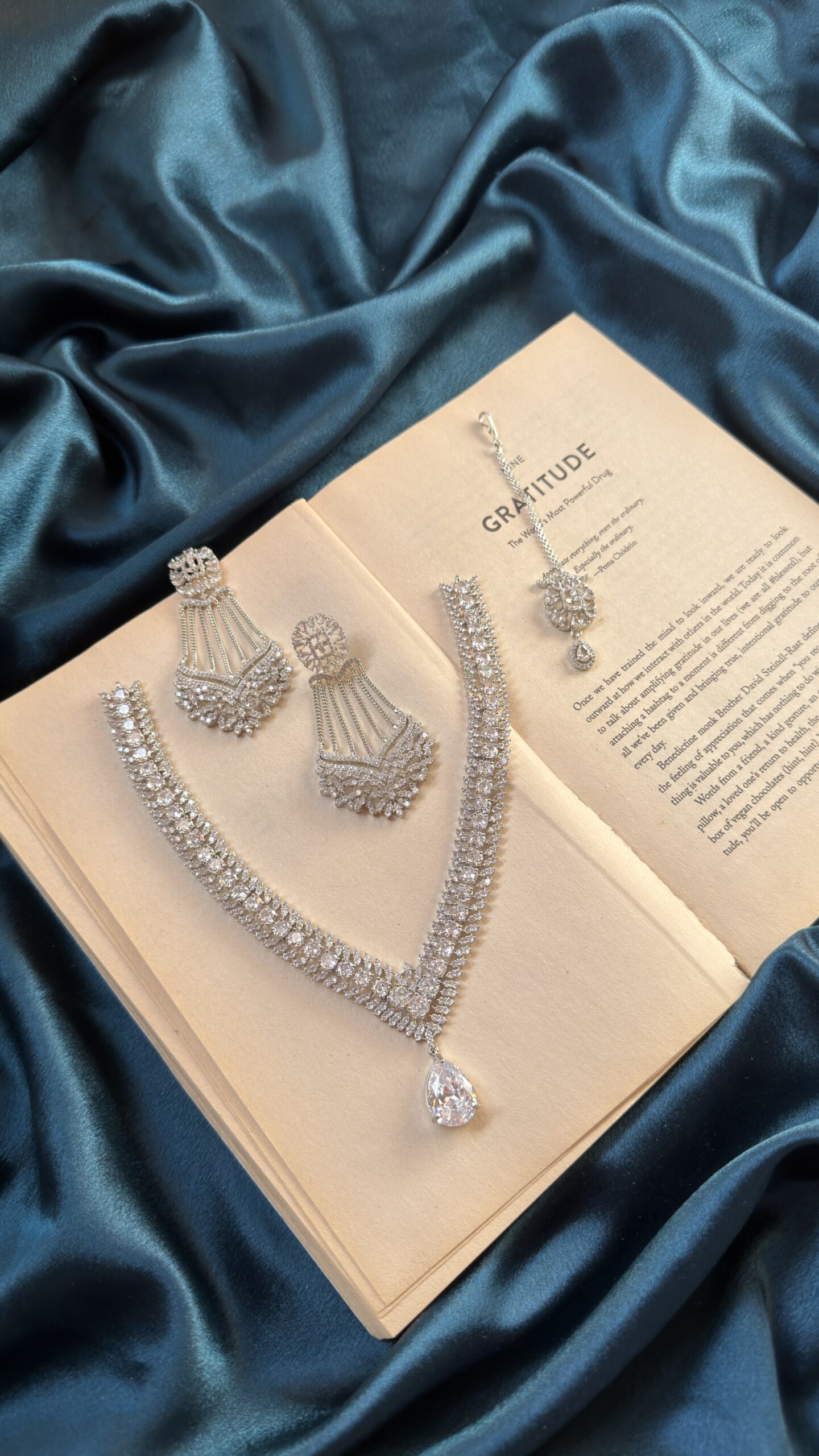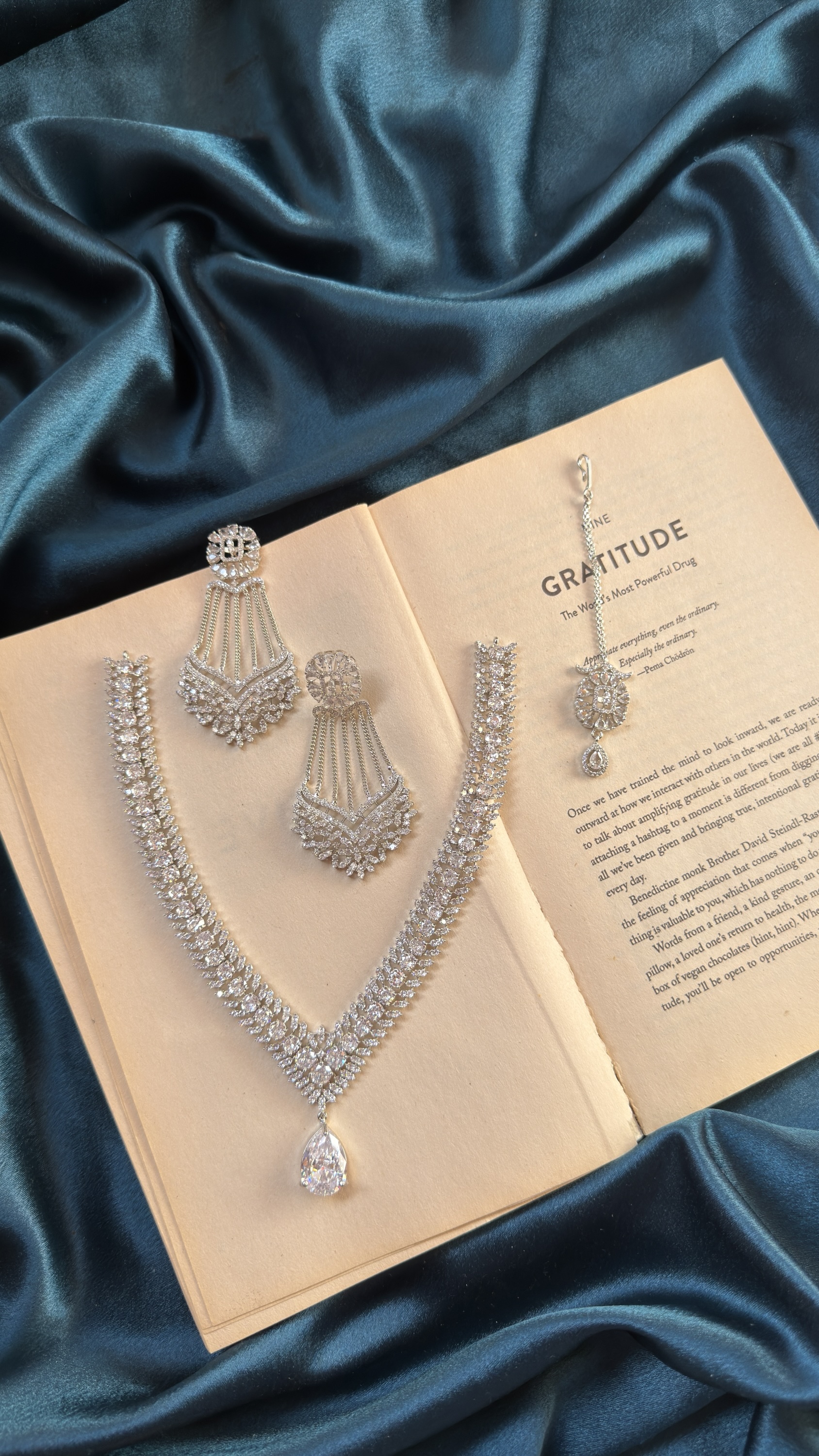 AD Golden Polish Necklace Set With Earrings and Mangtika – Silver