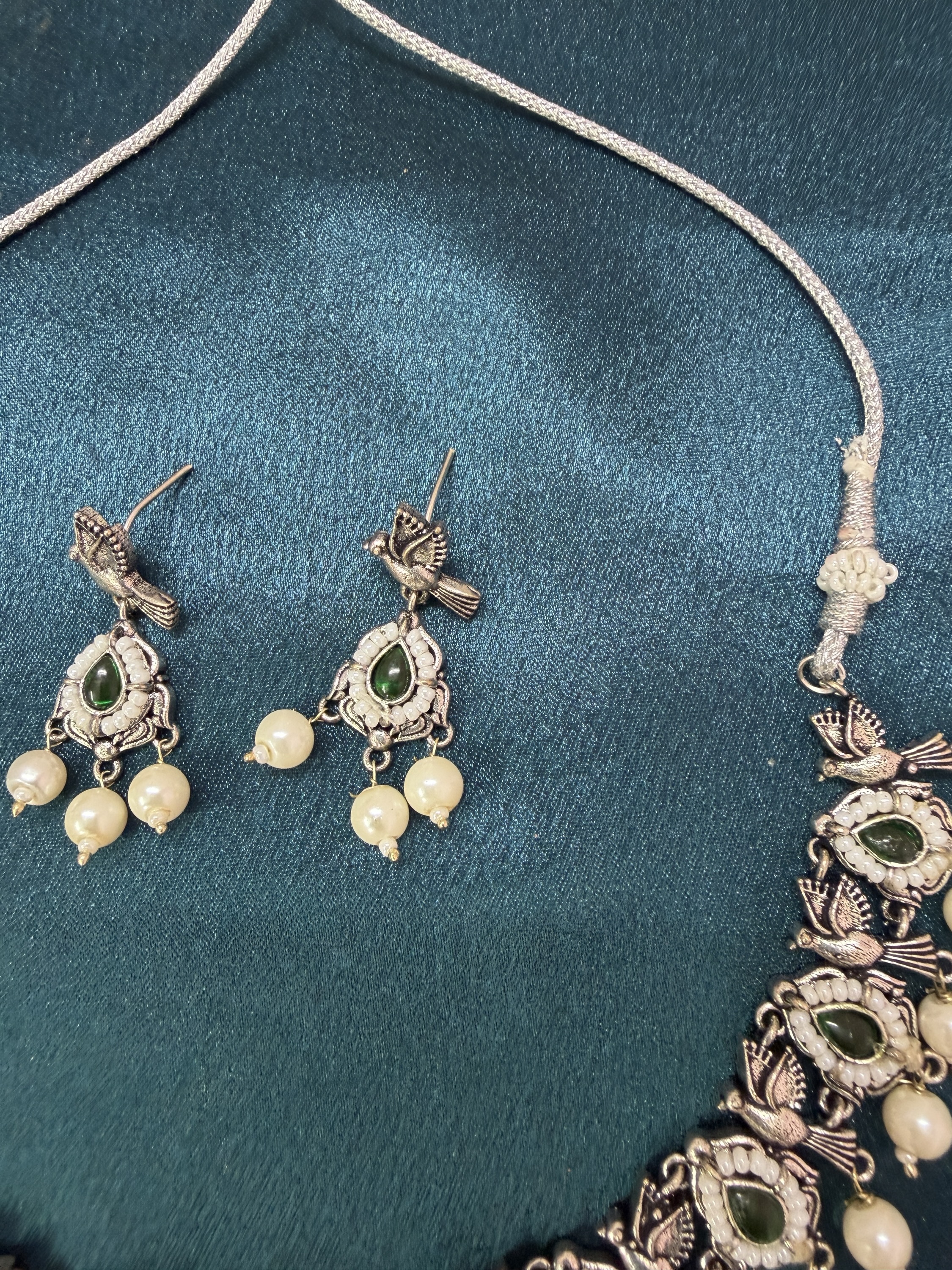 Silver Replica Flower Necklace Set With Earrings – Ruby