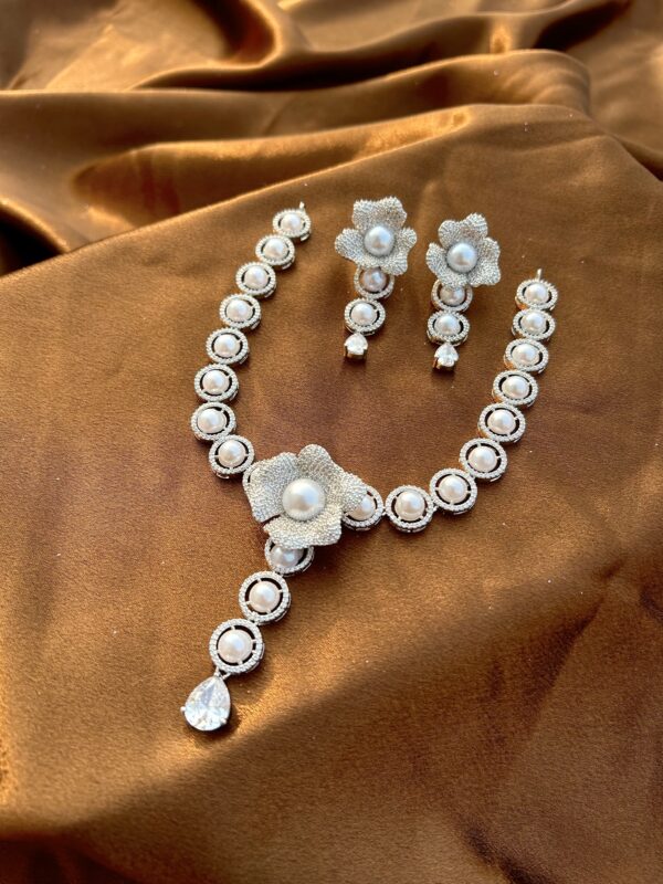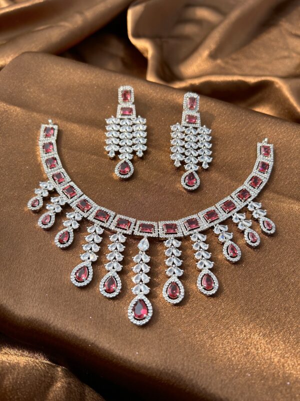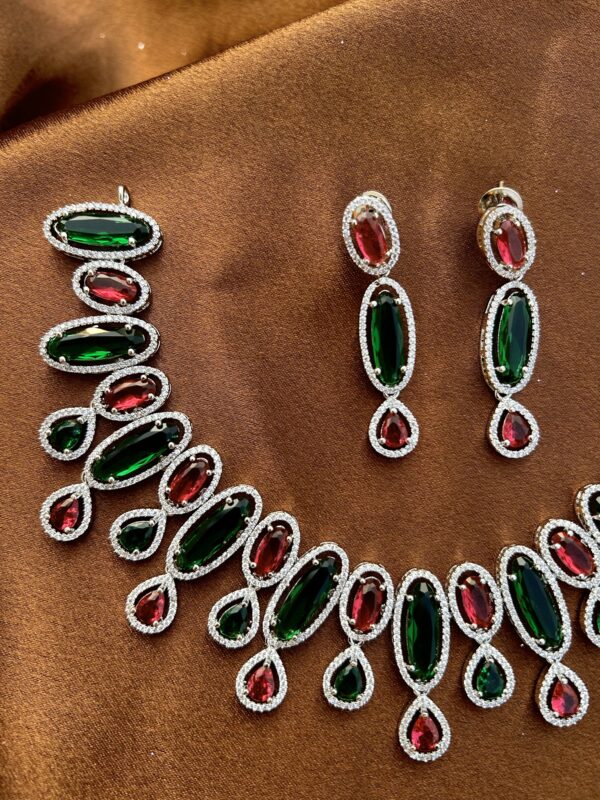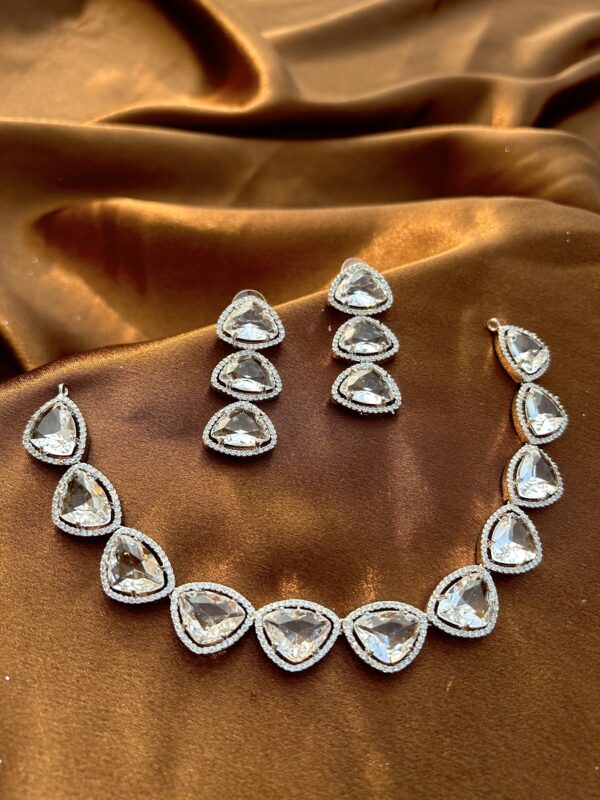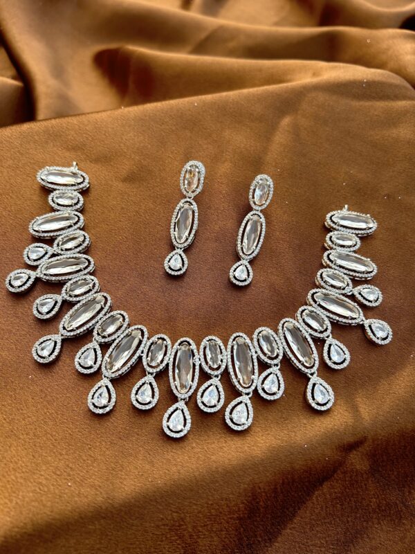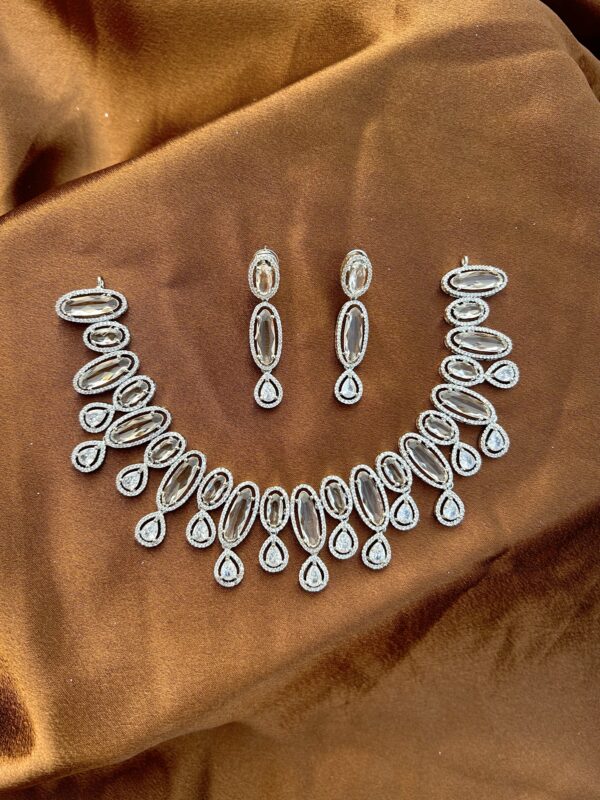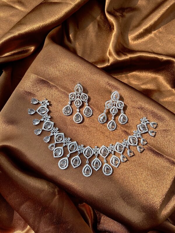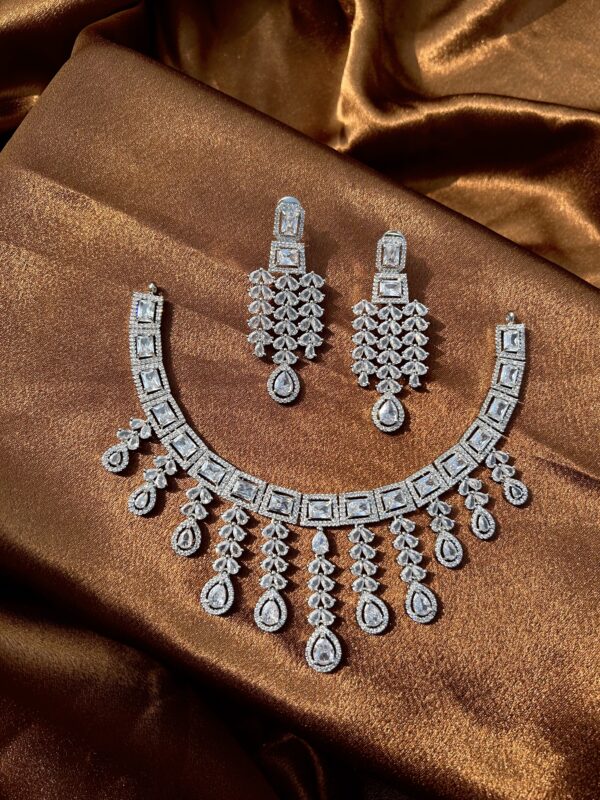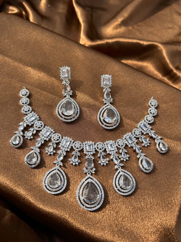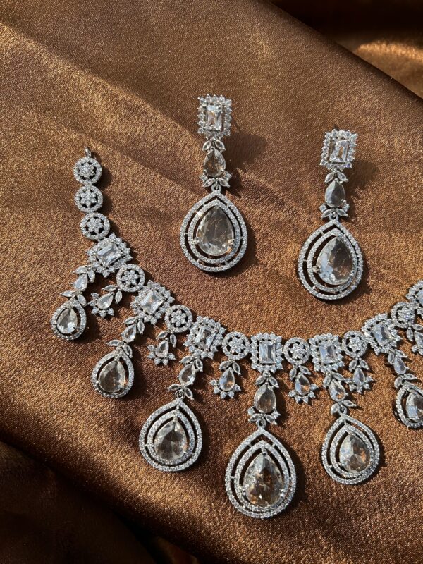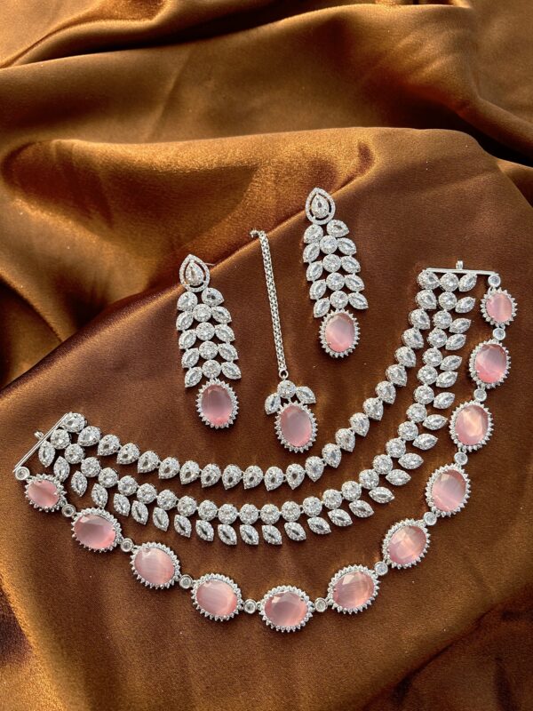 AD Necklace 3 Layer Set With Mangtika – Silver
