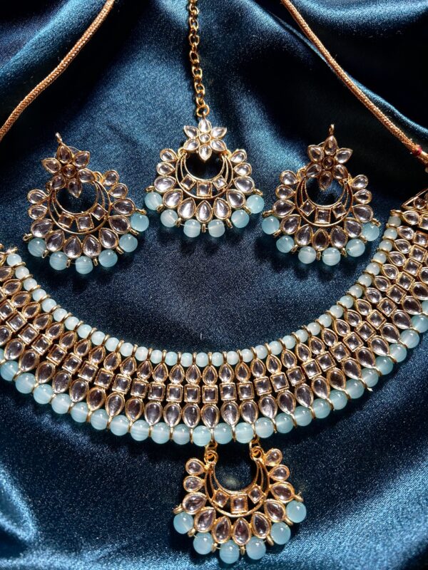 Kundan Choker Set with Mangtika- Blue