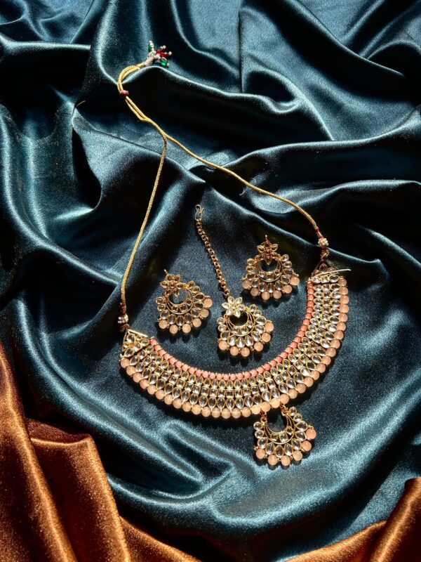 Kundan Choker Set With Mangtika – Peach