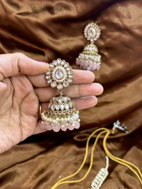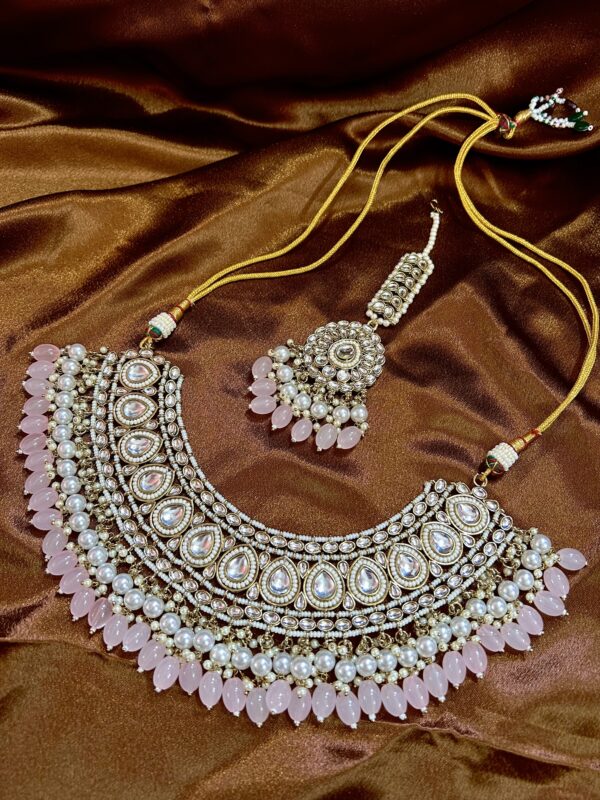 Kundan Necklace Set With Mangtika and Pasa – Pink