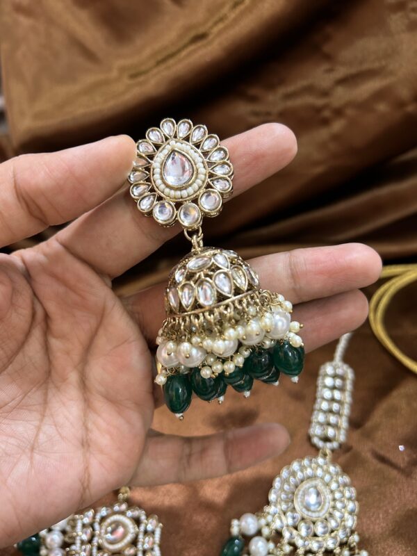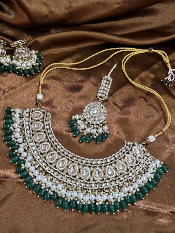 Kundan Necklace With Mangtika and Pasa – Green