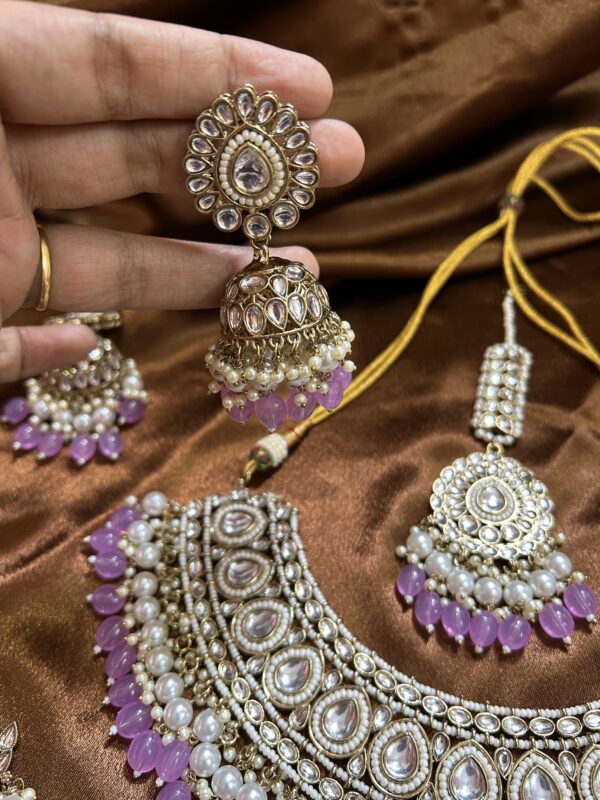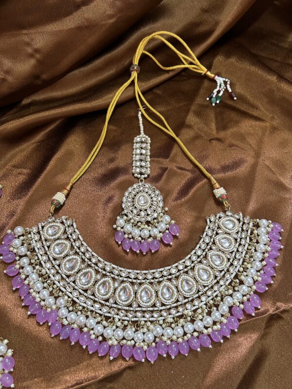 Kundan Necklace Set With Mangtika and Pasa – Lavender