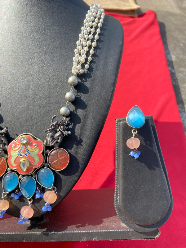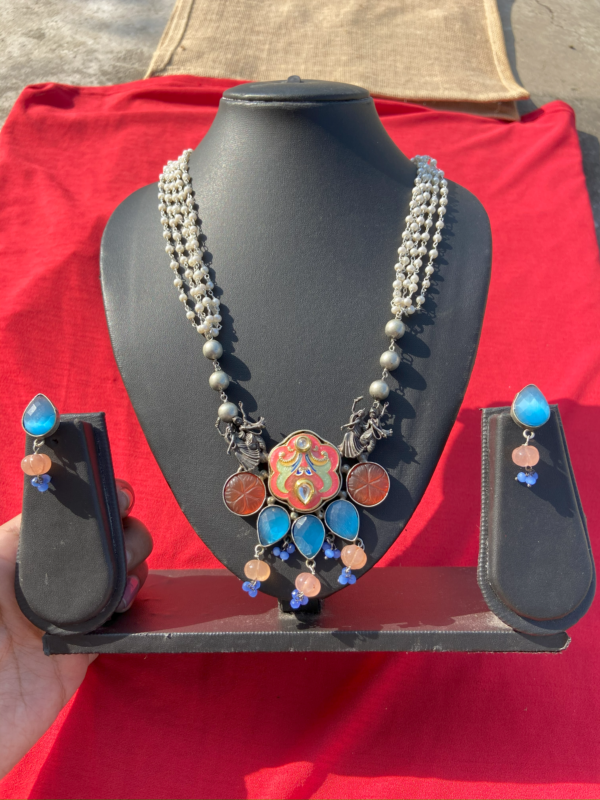 Silver Replica Necklace With Leaf pattern – Peach and Mint Green