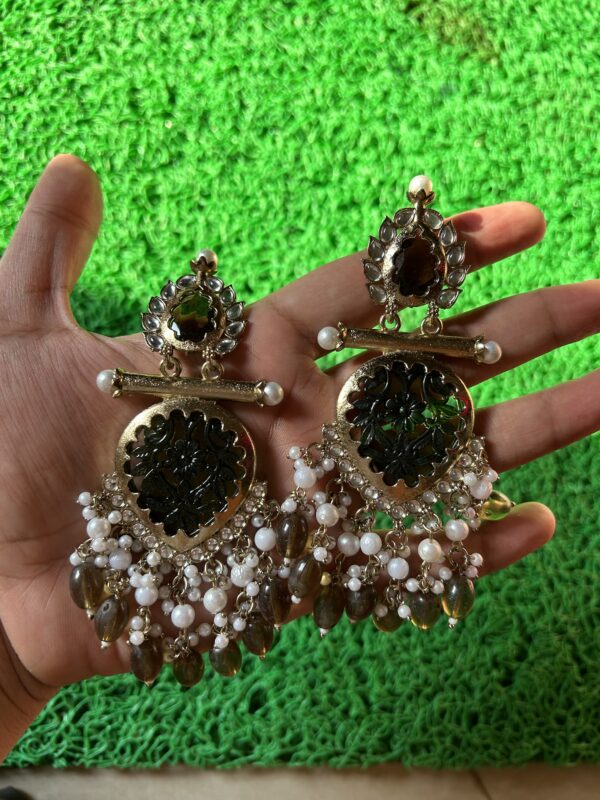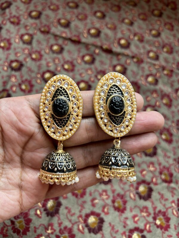 Meenakari Jhumki with Stone- Black