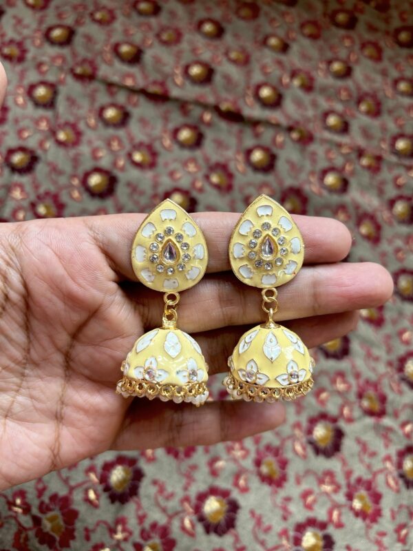 Meenakari Jhumki- Lemon Yellow