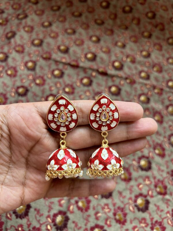 Meenakari Jhumki- Red