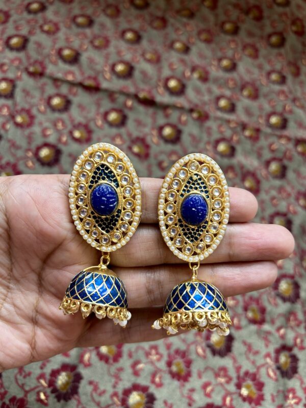 Meenakari Jhumki with Stone- Navy Blue