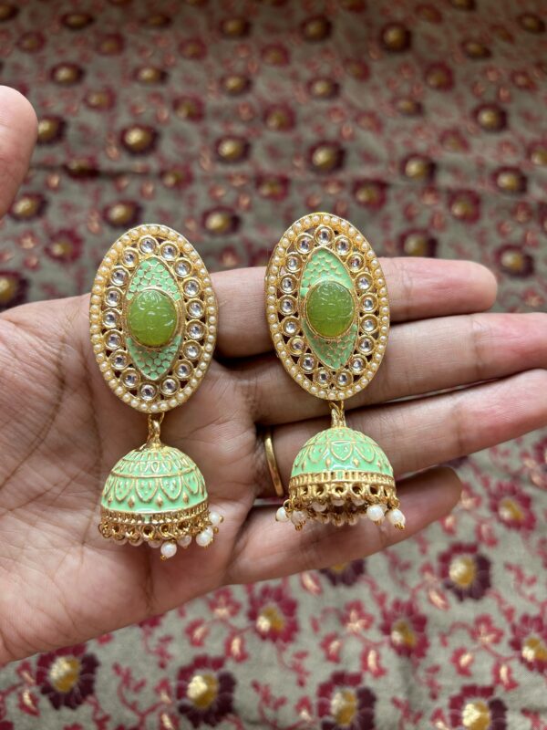 Meenakari Jhumki with stone- Pastel Green