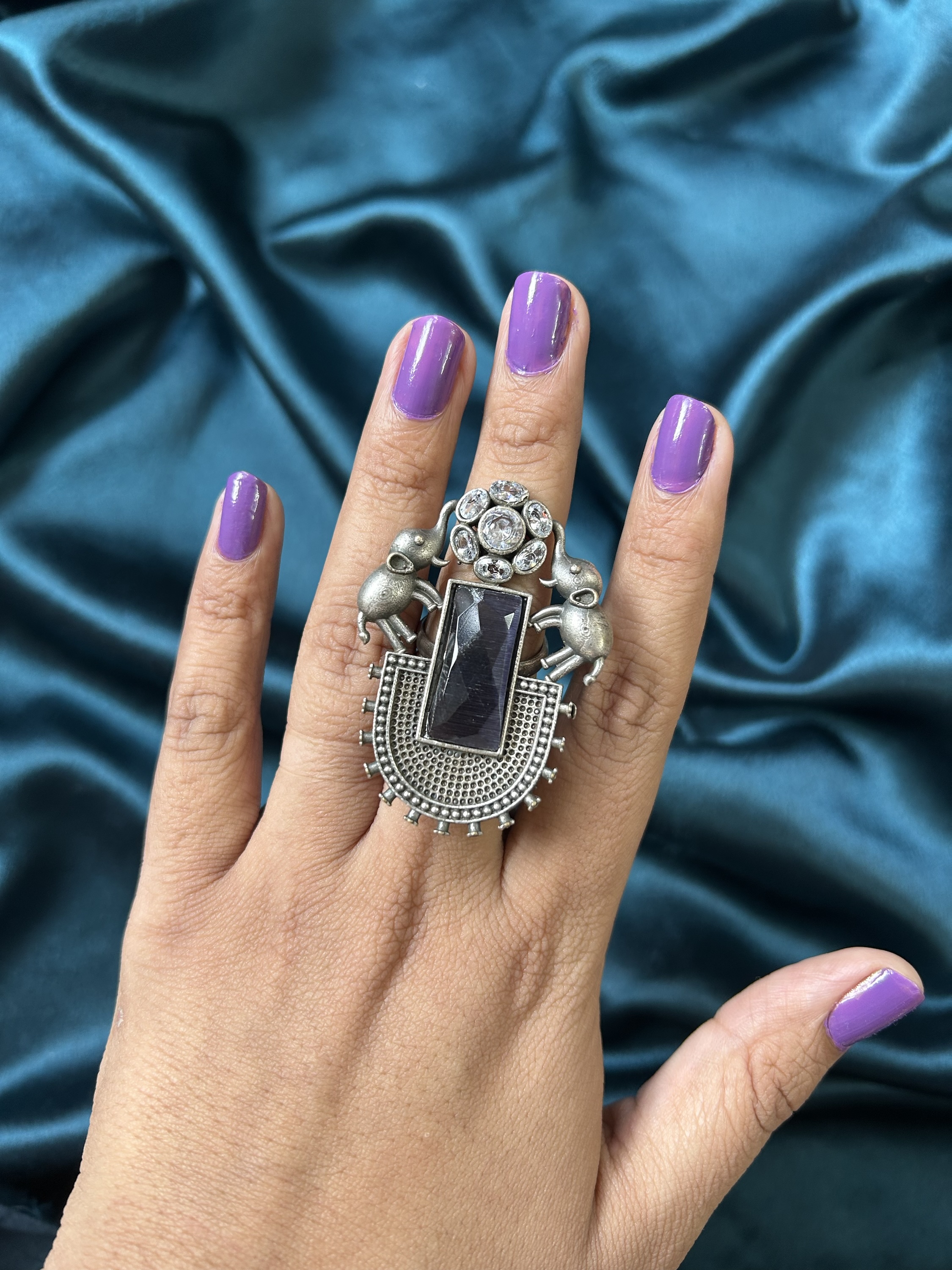 Oxidise Anklet With Elephants