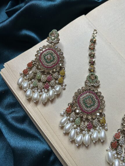 Pakistani Earrings With Mangtika – Multi