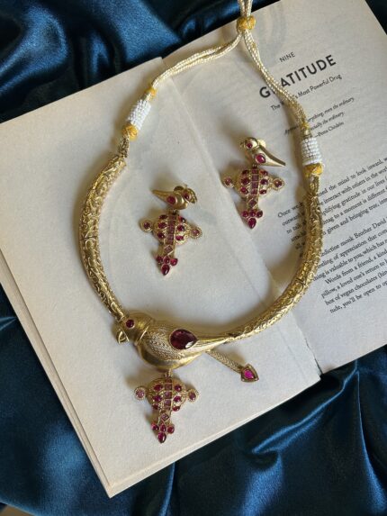 Brass Hasli Leaf Hanging necklace Set With Earrings