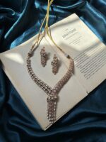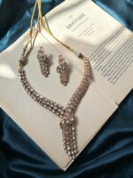 AD and Moissanite Tie Necklace Set With earrings – Pink