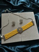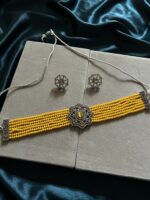 Home Neck Sets & Choker Sets AD Choker Set With Studs – Yellow
