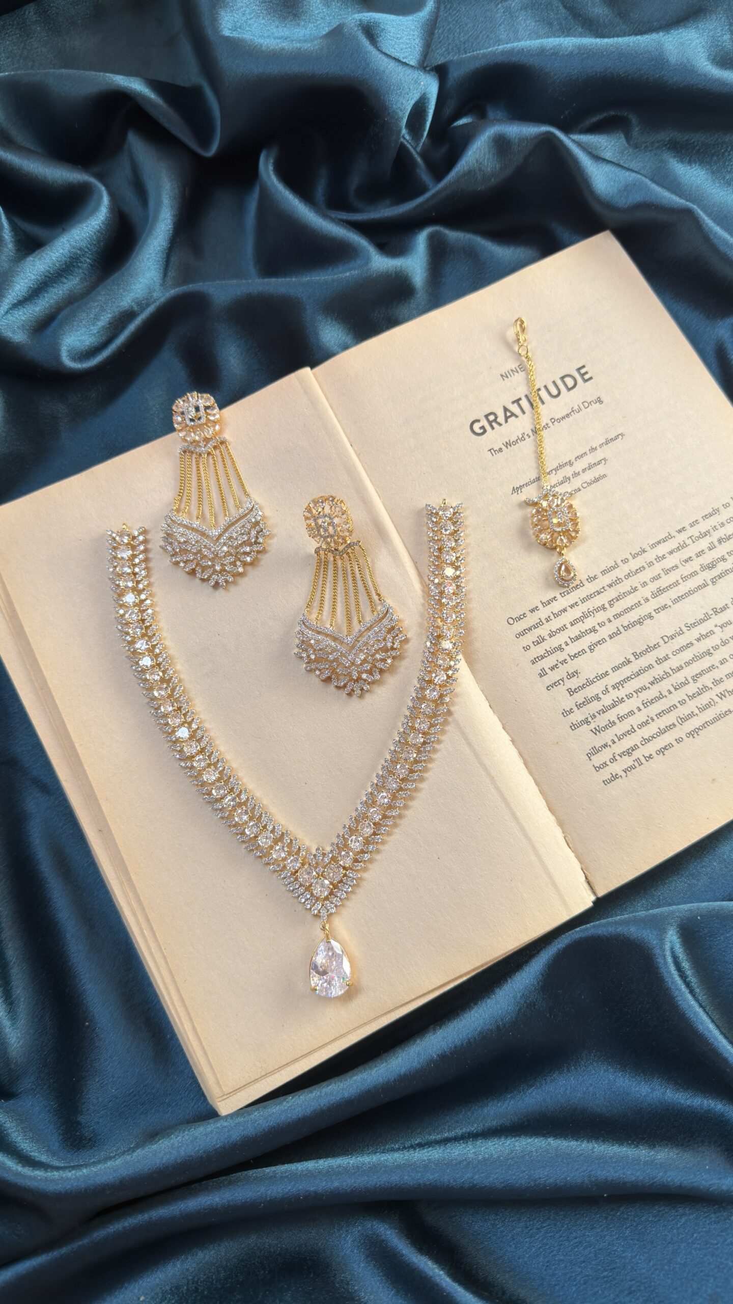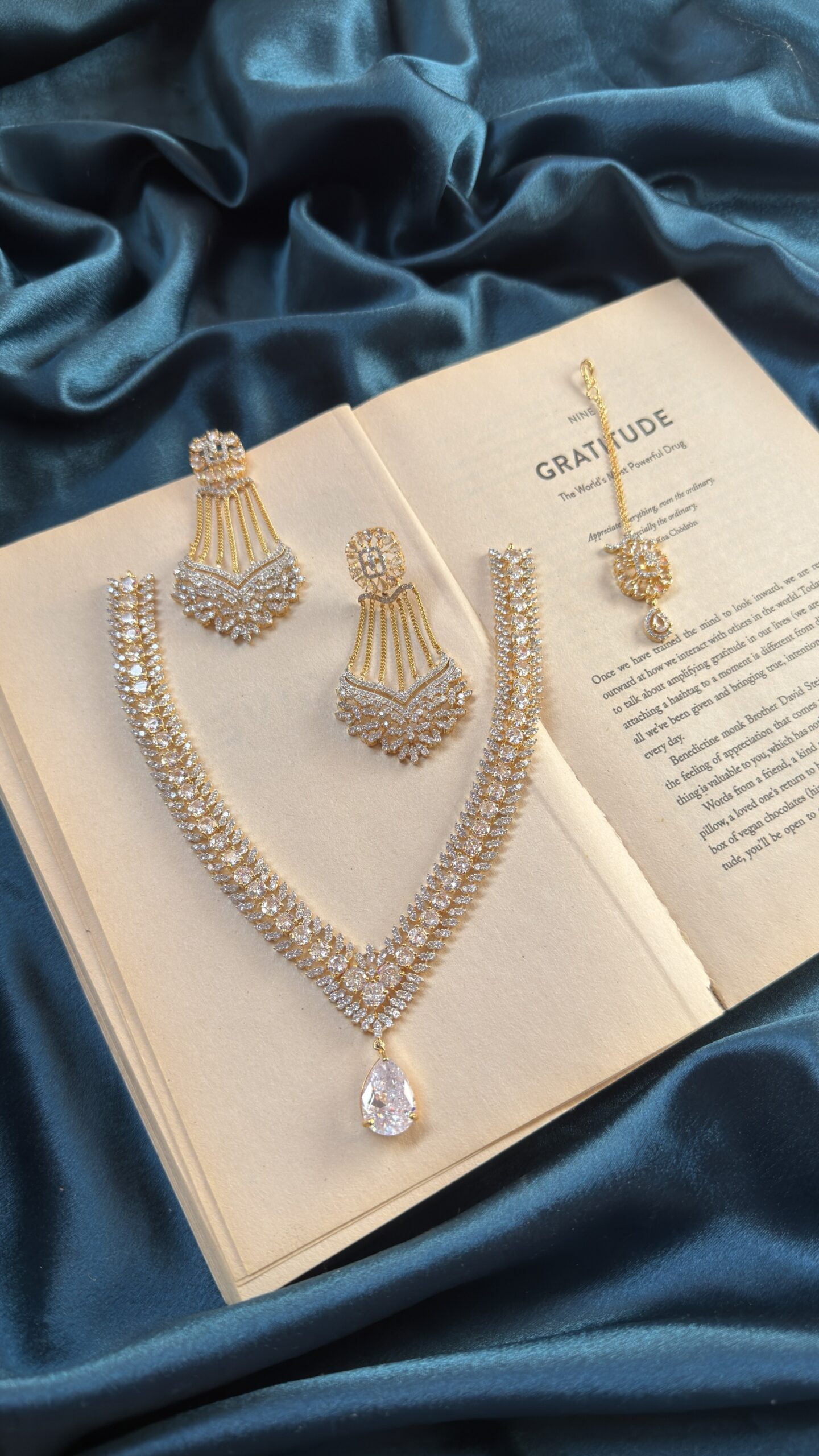 AD Golden Polish Necklace Set With Earrings and Mangtika – Silver