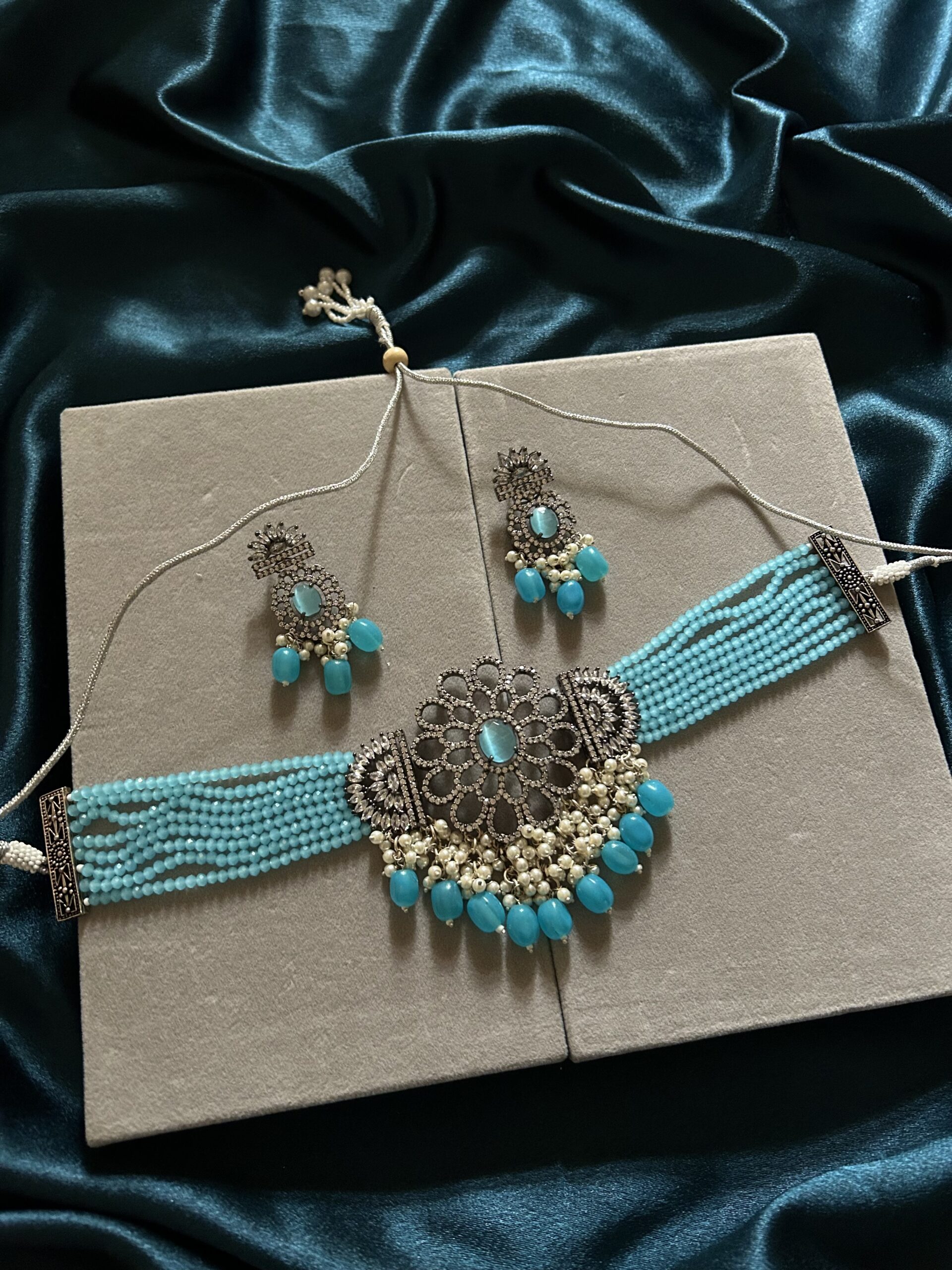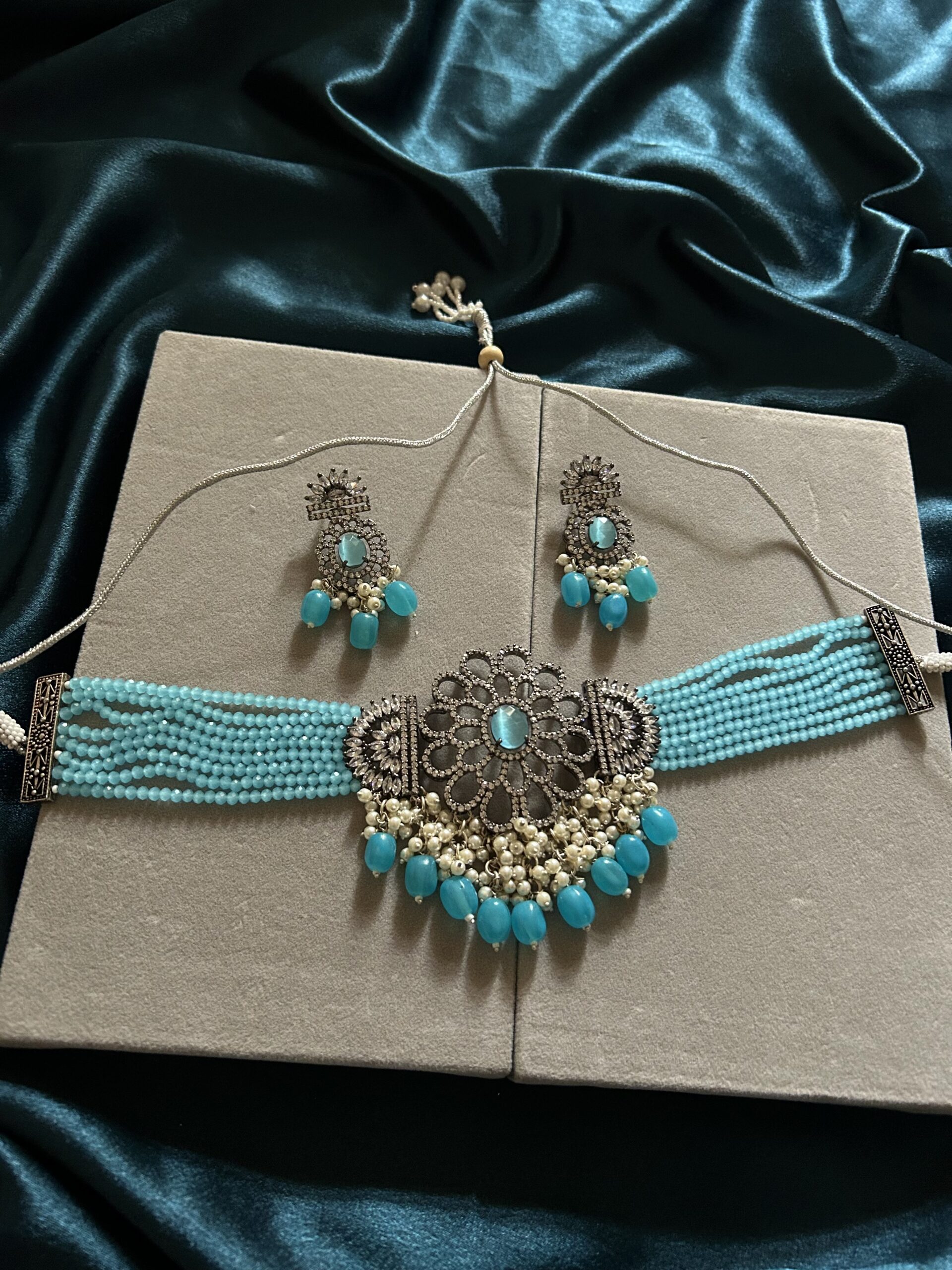 Home Neck Sets & Choker Sets AD Monalisa Necklace Set – Sky Blue