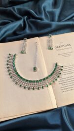 Home American Diamond and Polki AD Necklace Set With Earrings and Mangtika – Green