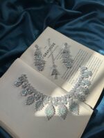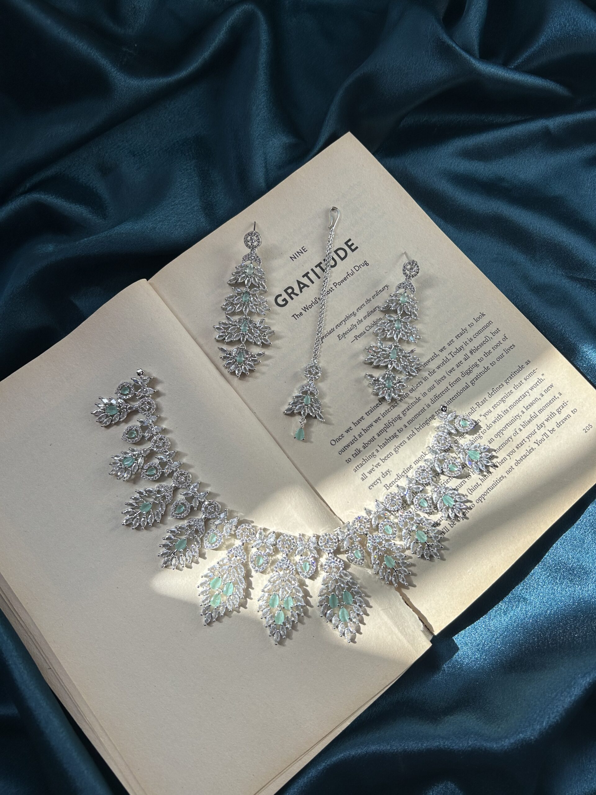Home American Diamond and Polki AD Necklace Set With Earrings and Mangtika – Mint