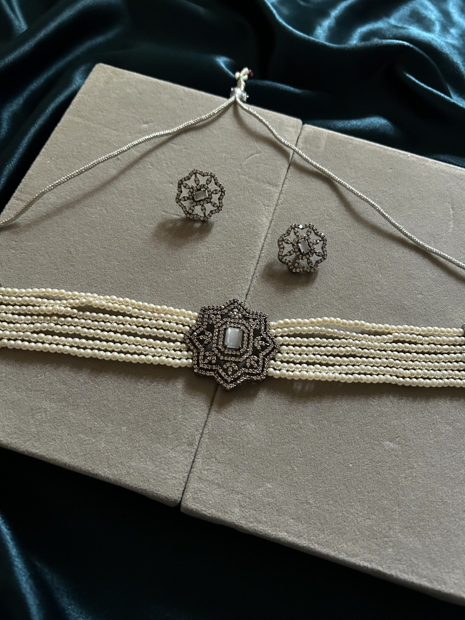 Home Neck Sets & Choker Sets AD Pearl Choker Set With Studs