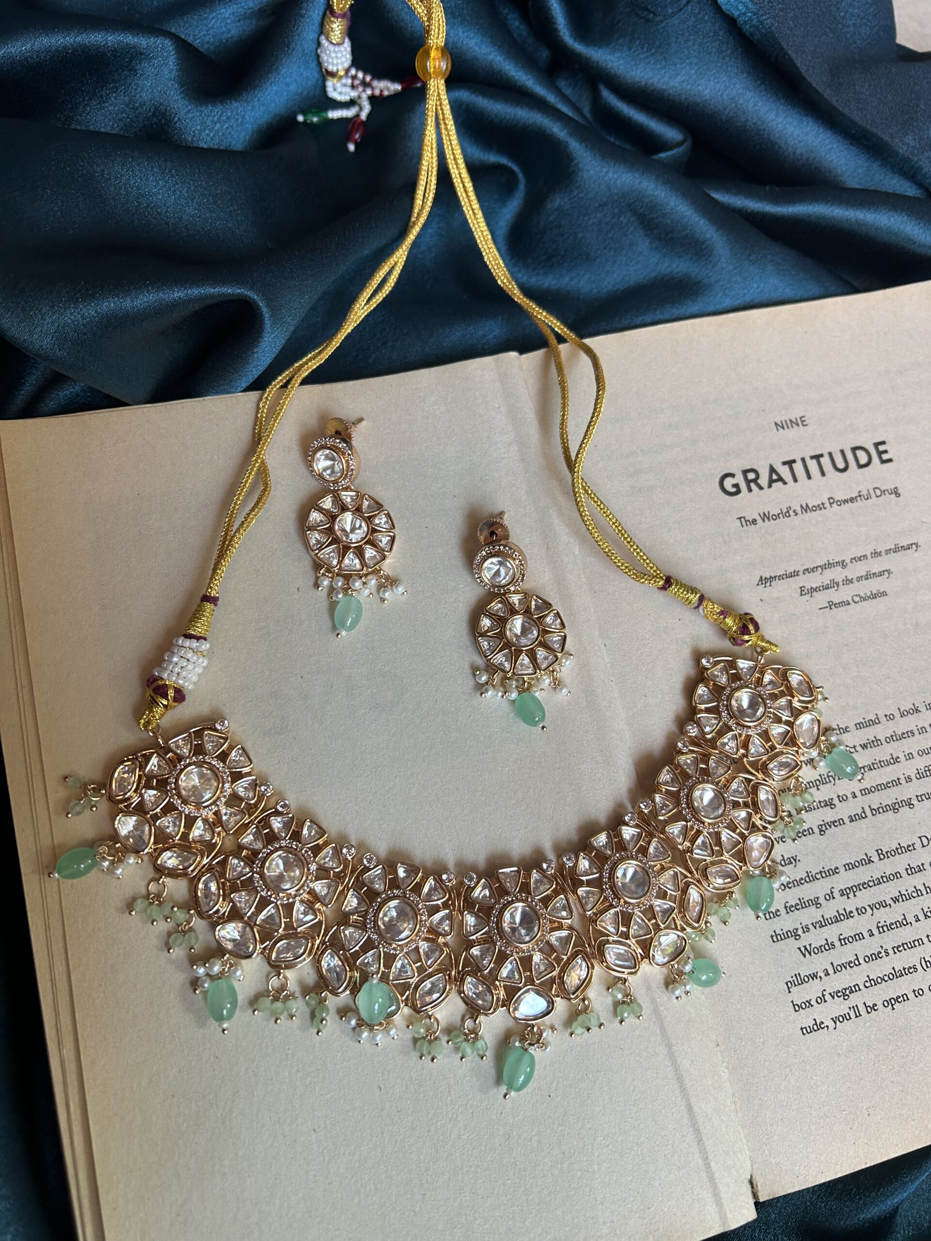 Home American Diamond and Polki AD Polki Necklace Set – Mint
