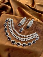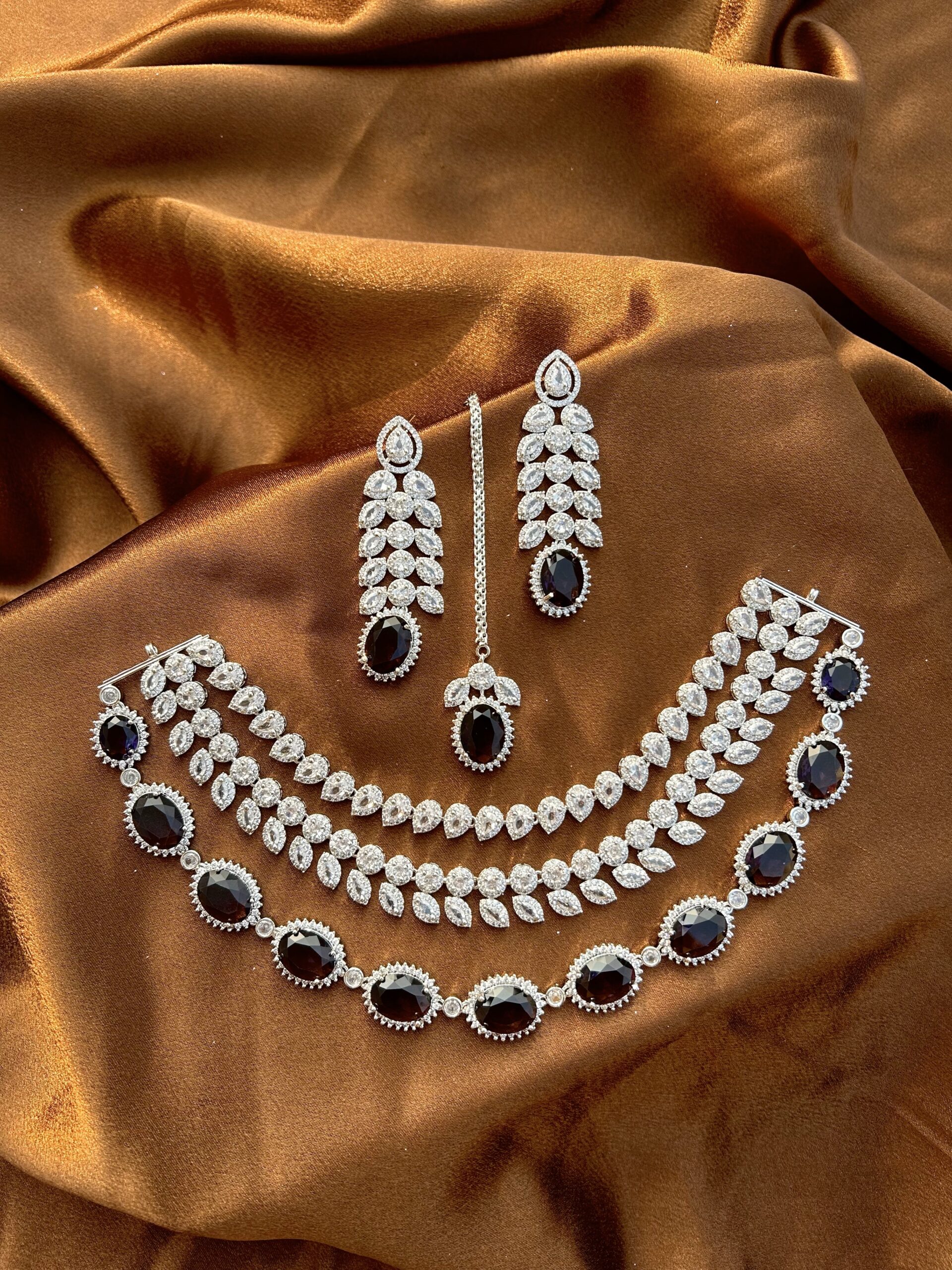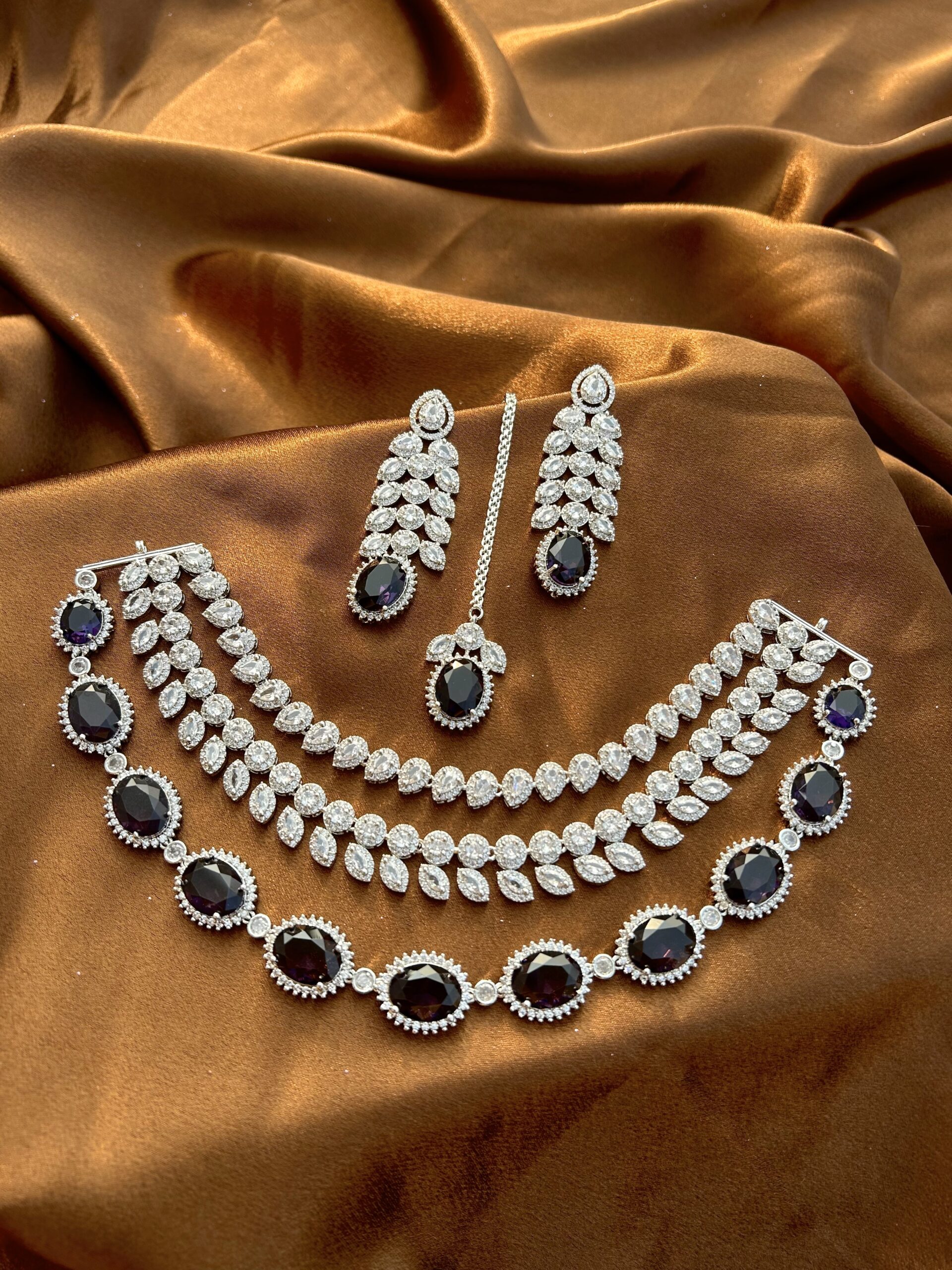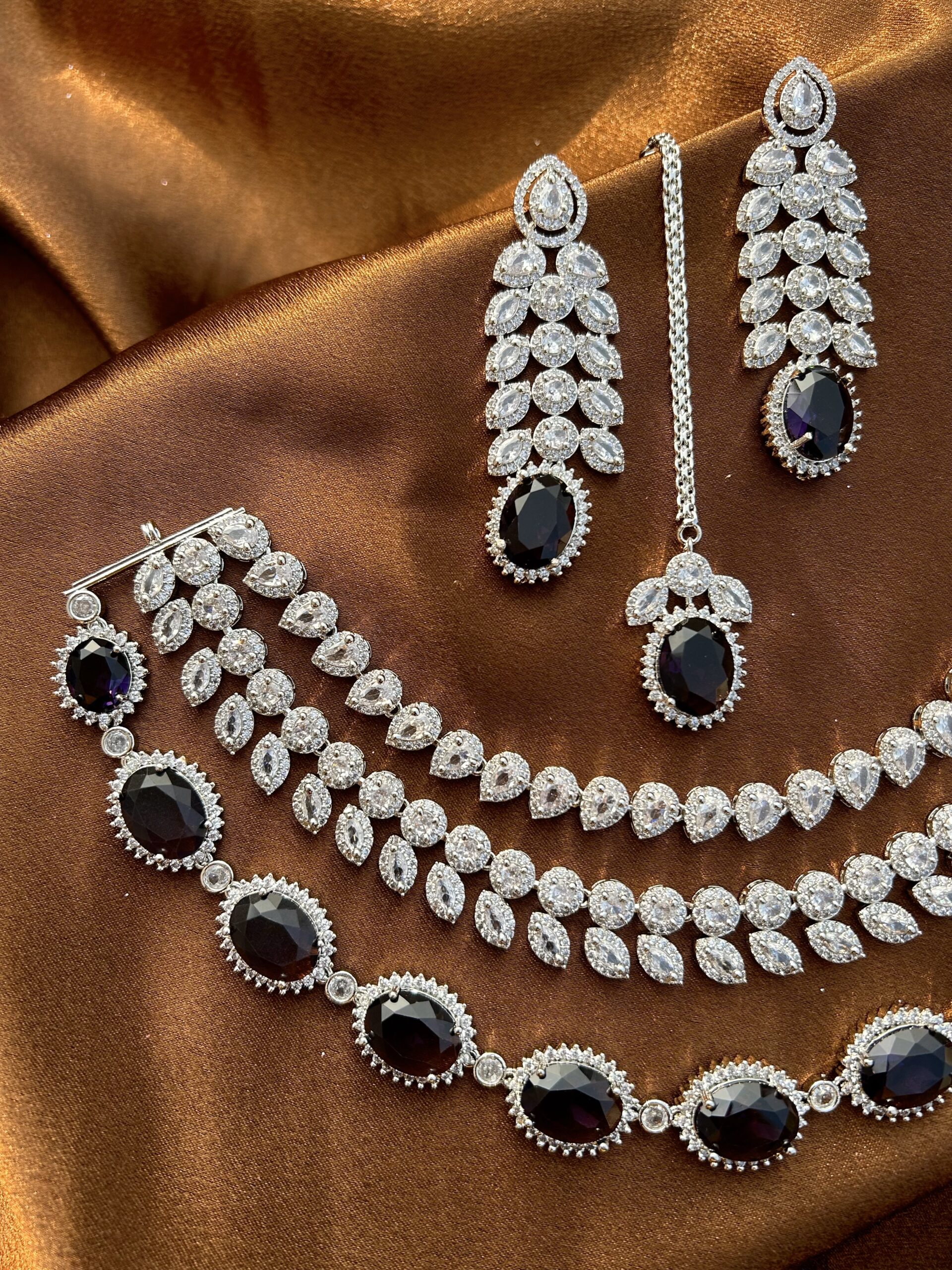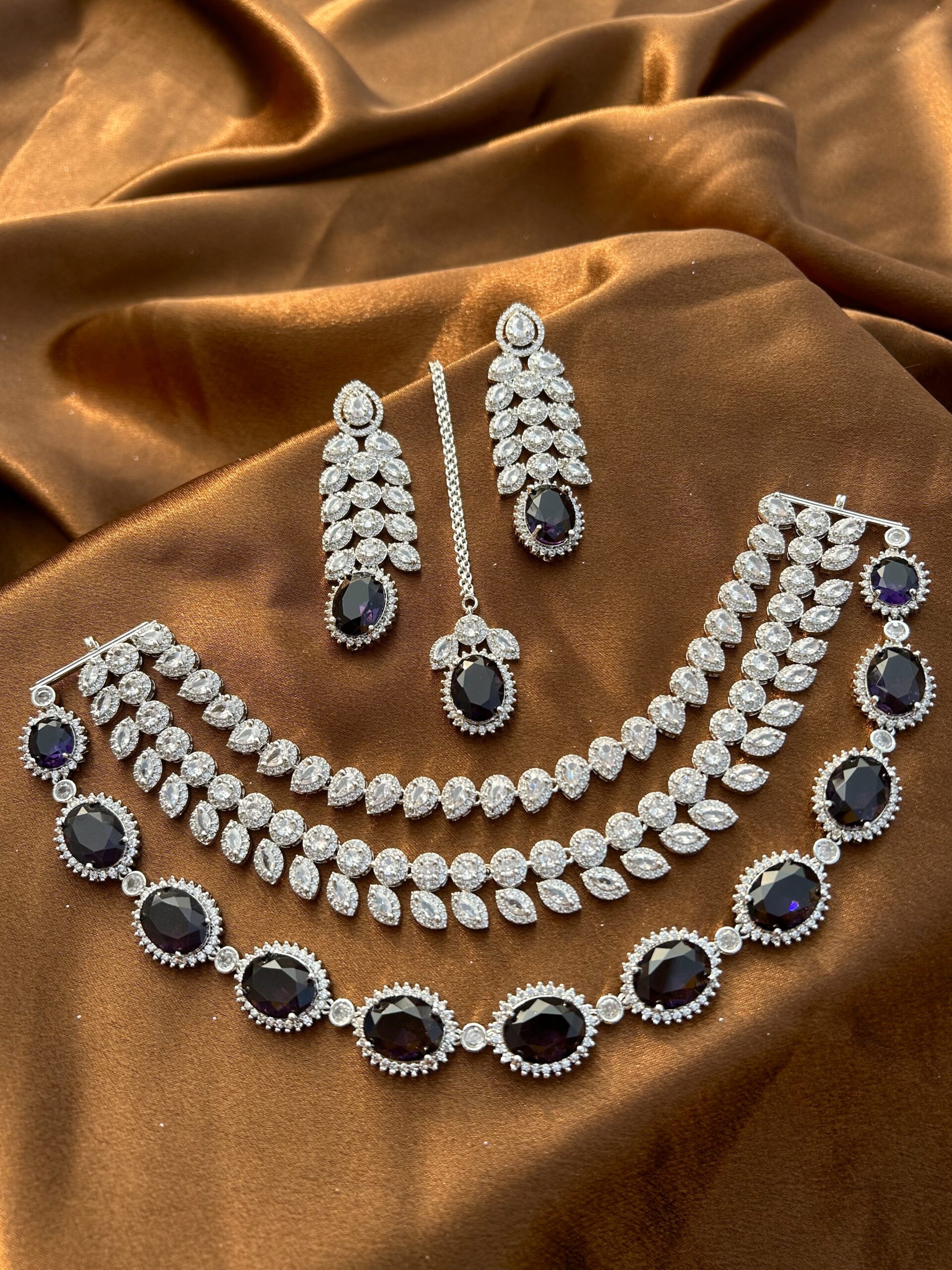 Home American Diamond and Polki AD Triple Layer Necklace Set – Purple