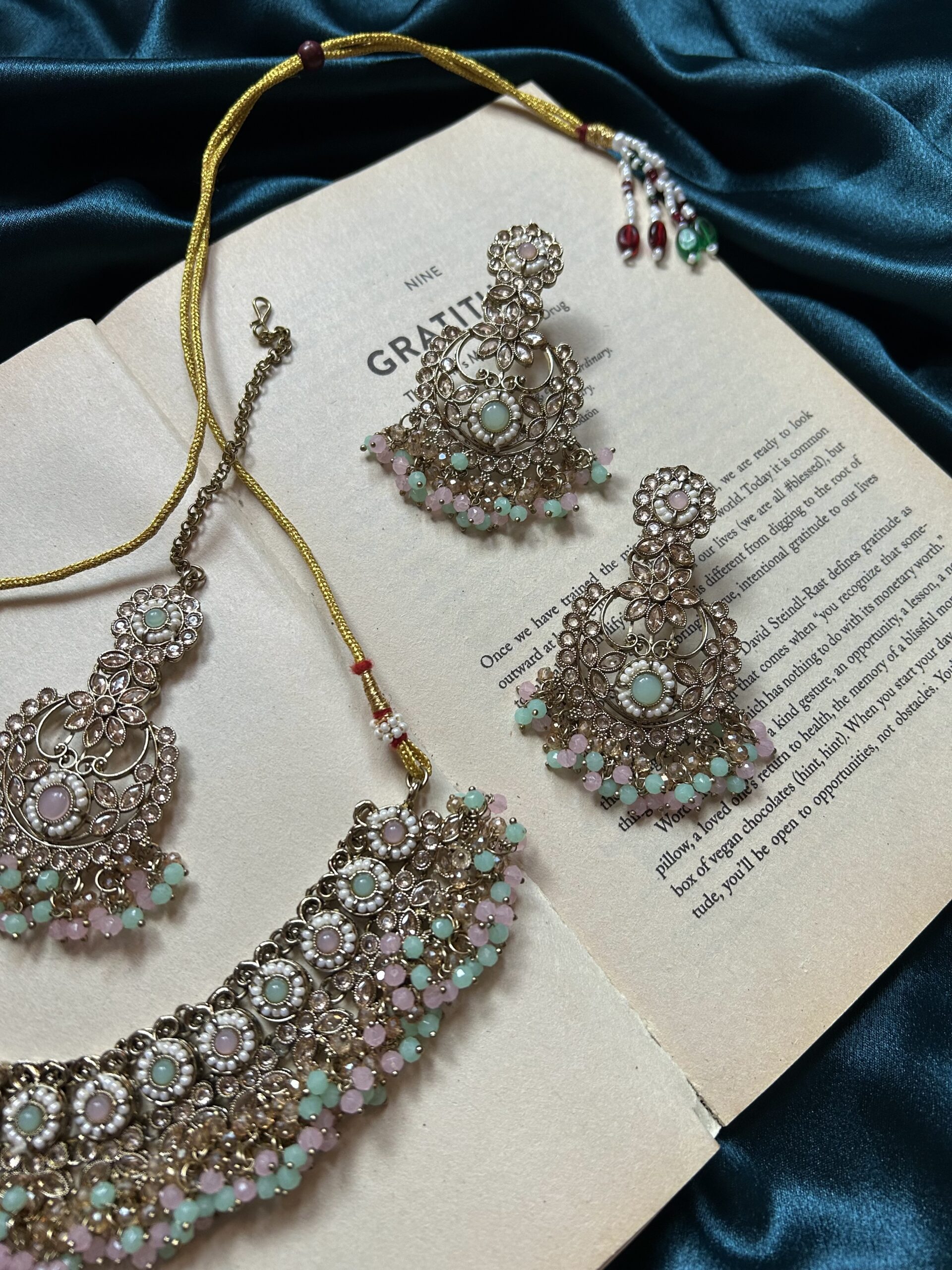 Beautiful Necklace Set With Mangtika – Mint Pink