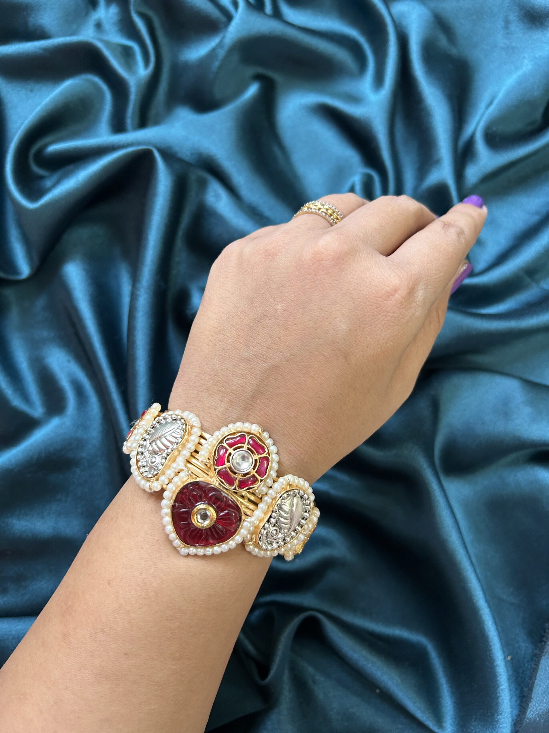Golden Leaf Kada With Ruby Stones