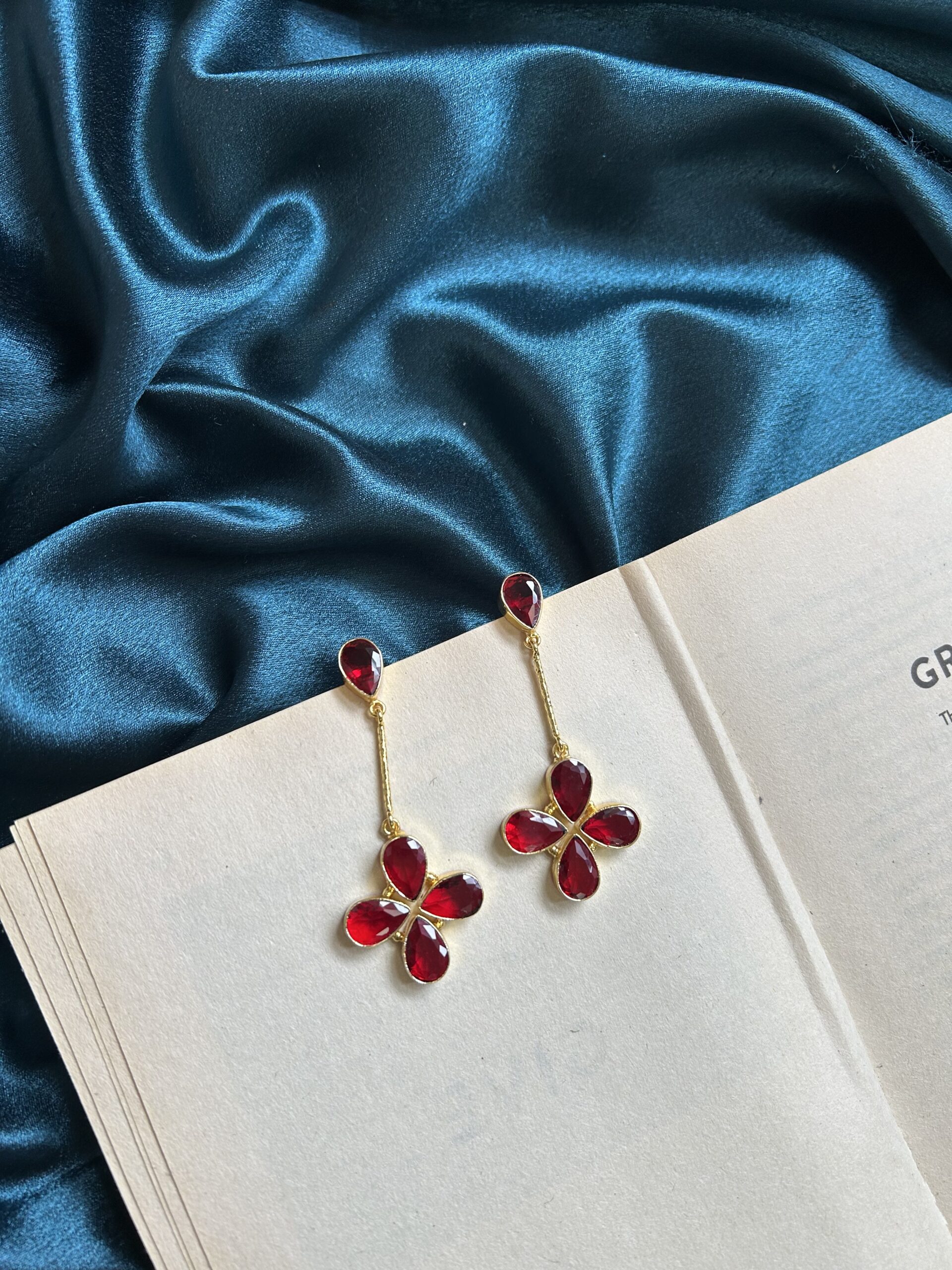 Home Earrings Brass Flower Natural Stone Earrings – Ruby