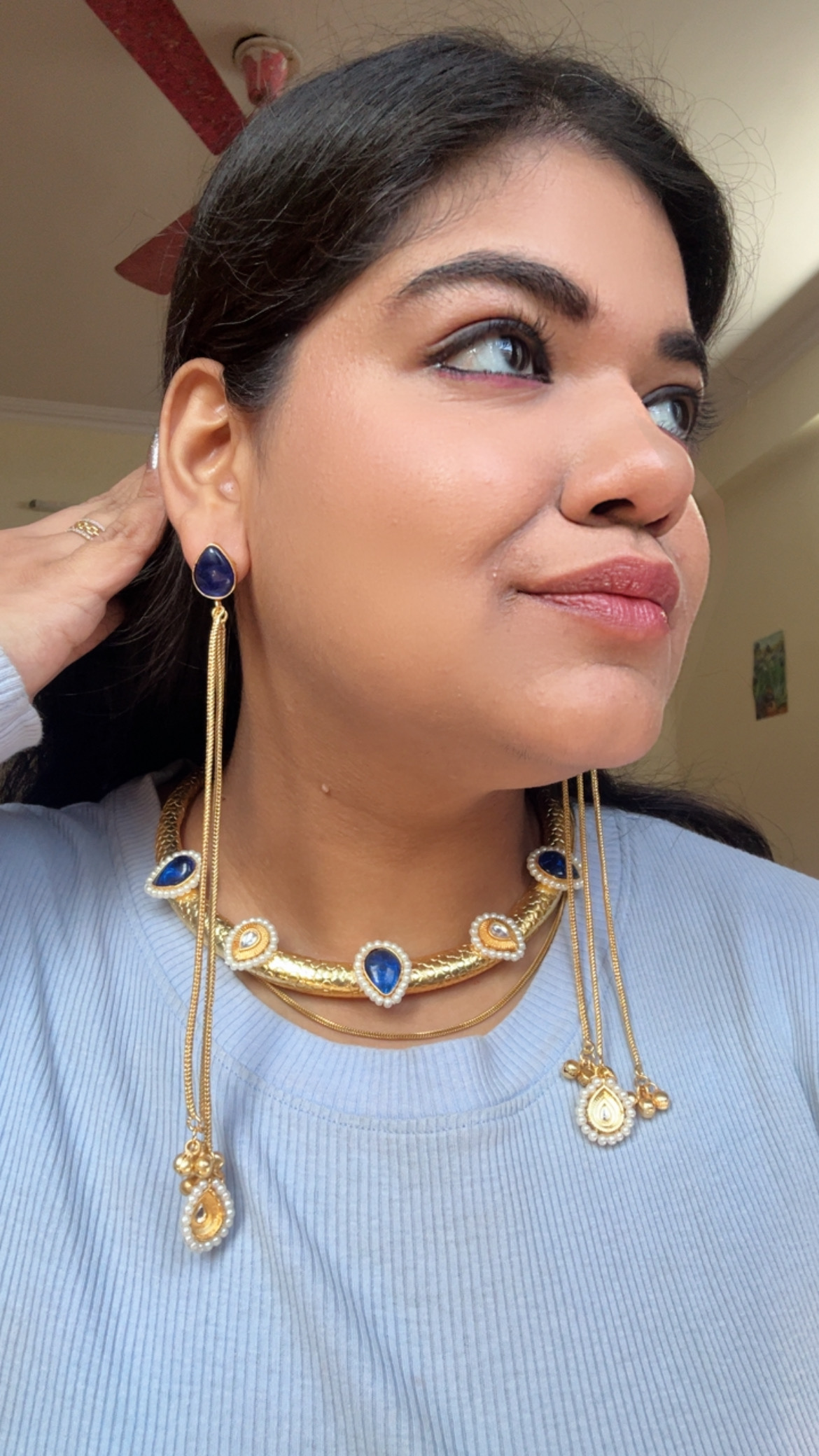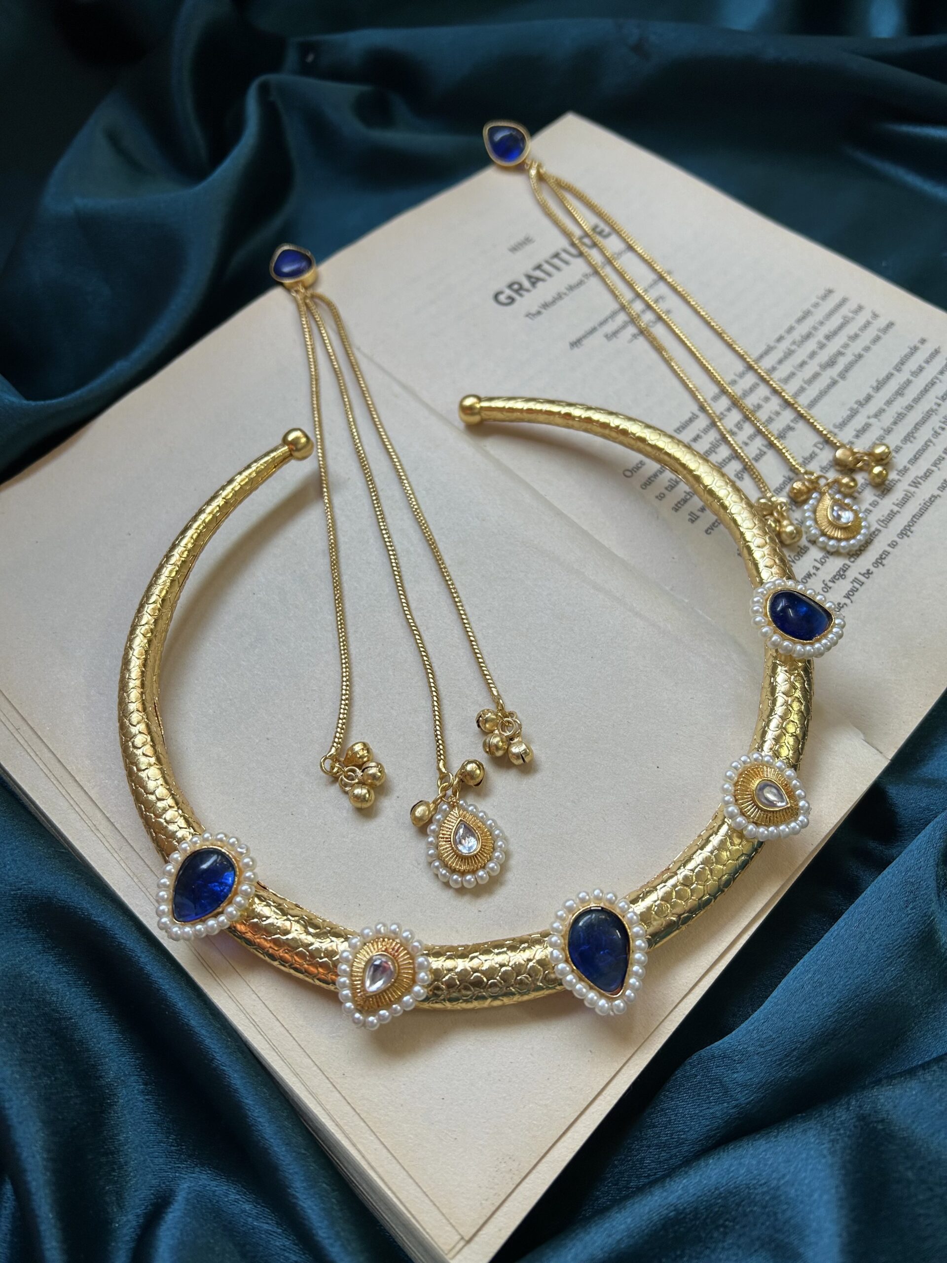 Brass Hasli With Kashmiri Earrings – Dark Blue