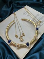 Home Neck Sets & Choker Sets Brass Hasli With Kashmiri Earrings – Dark Blue