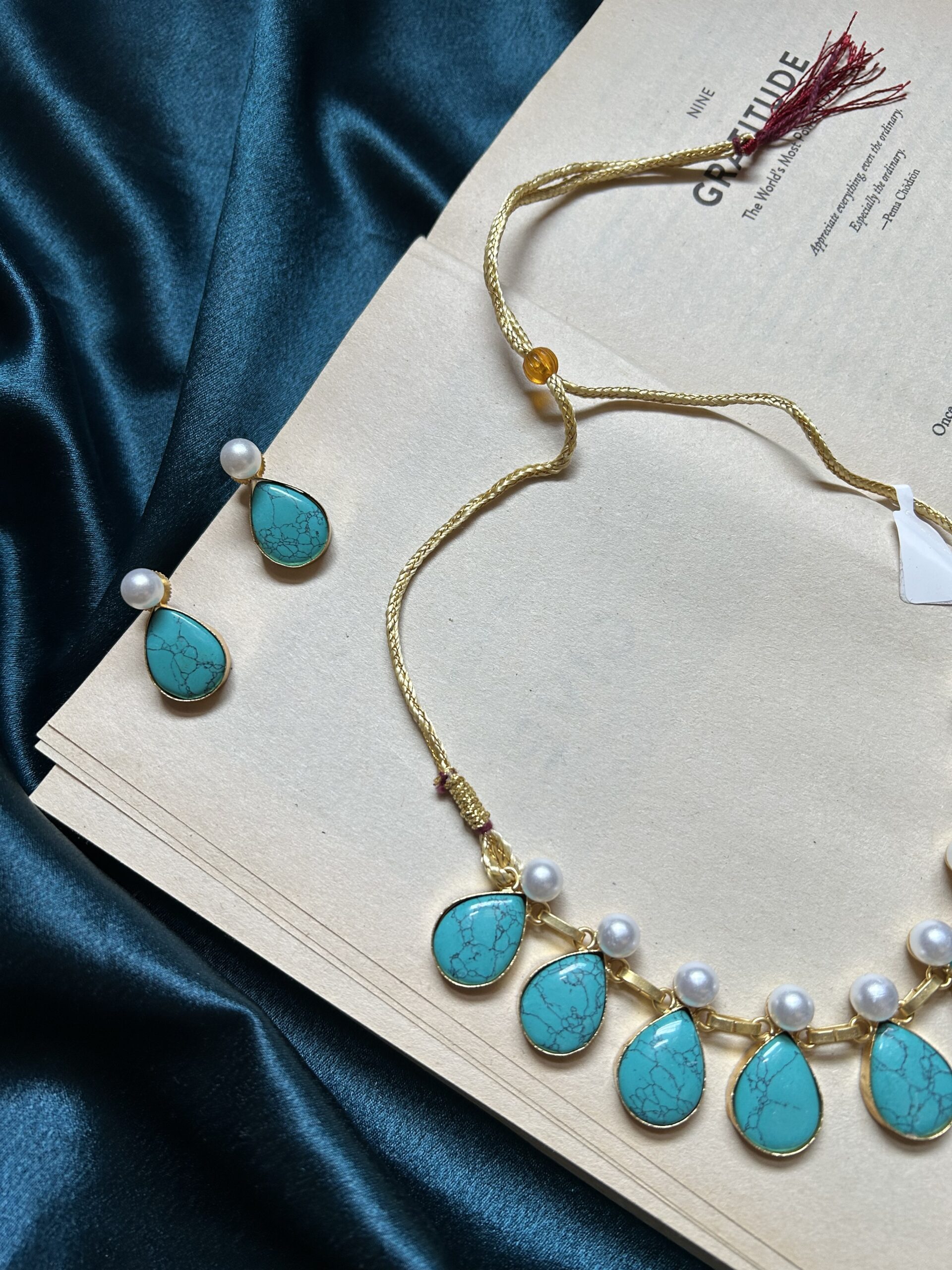 Brass Natural Stone Necklace Set With Earrings - Mint ₹1,800.00 Original price was: ₹1,800.00.₹550.00Current price is: ₹550.00.