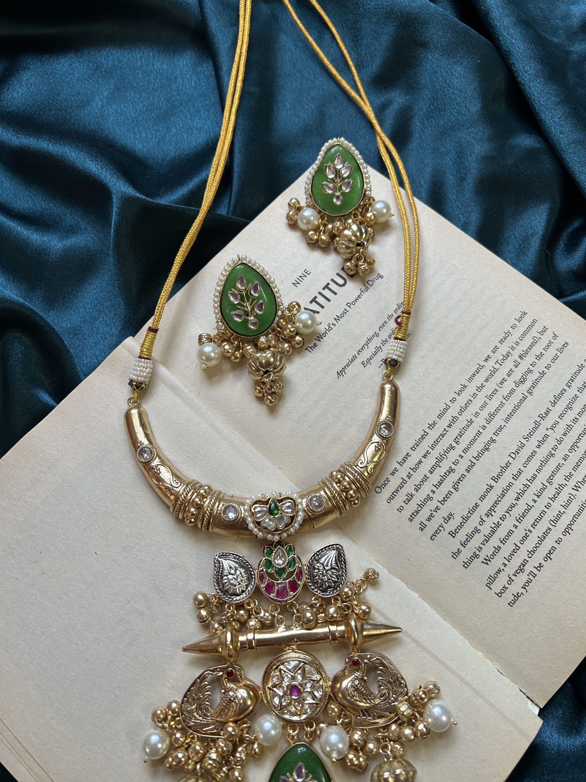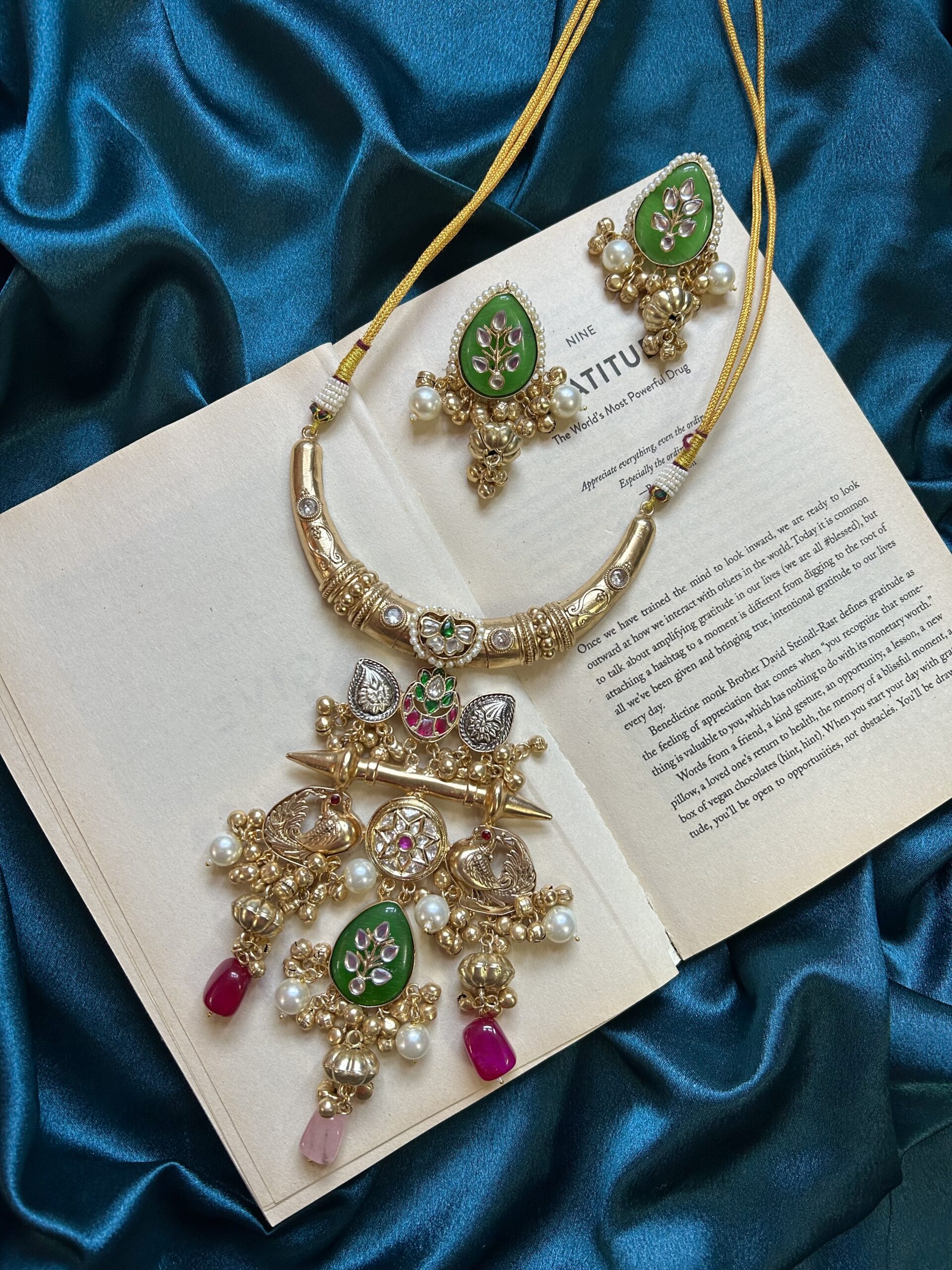 Kashmiri Beautiful Hasli With Earrings – Green Pink