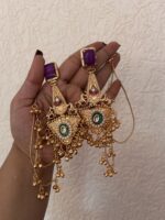 Kashmiri Earrings With Earchain – Purple