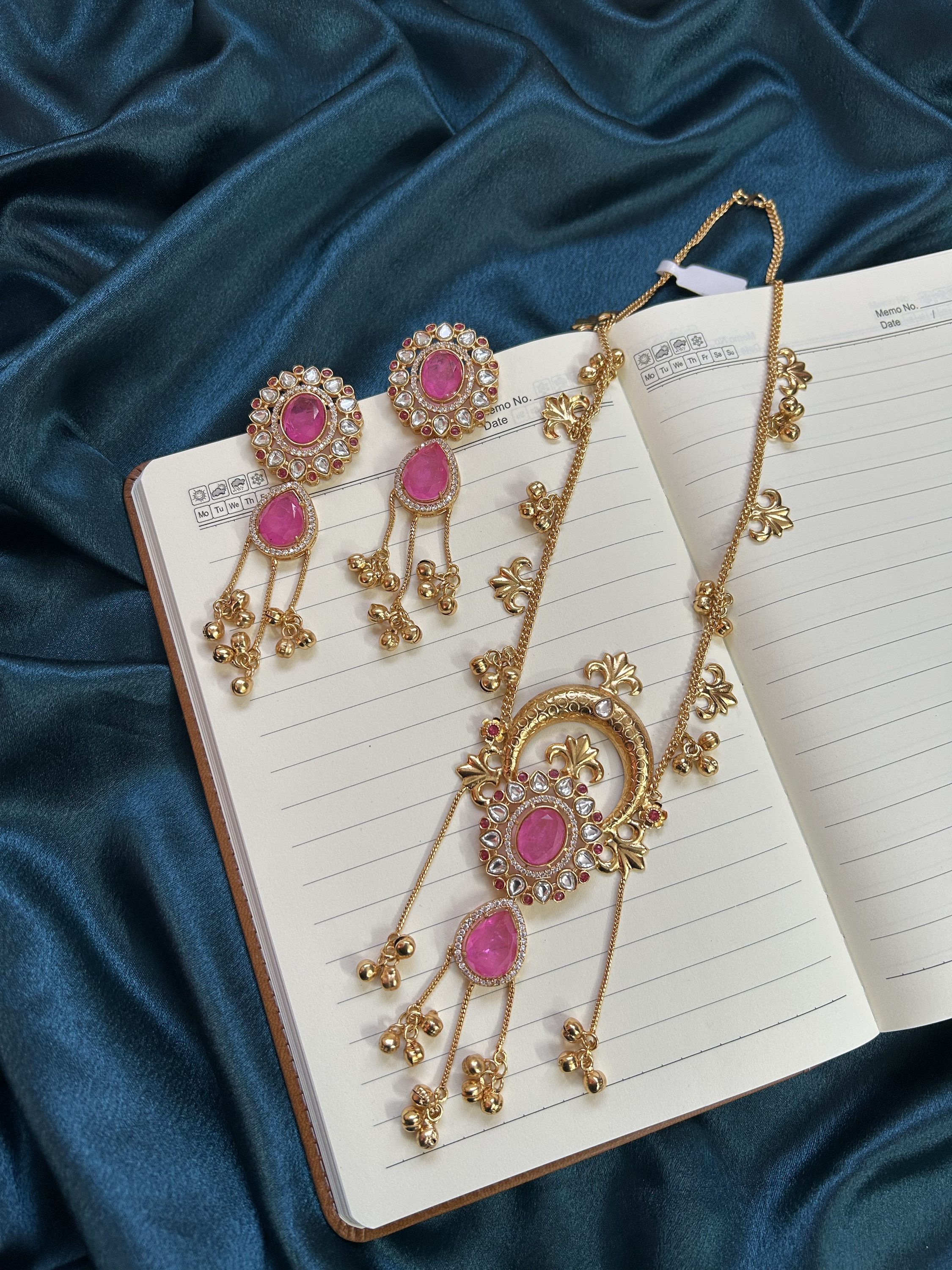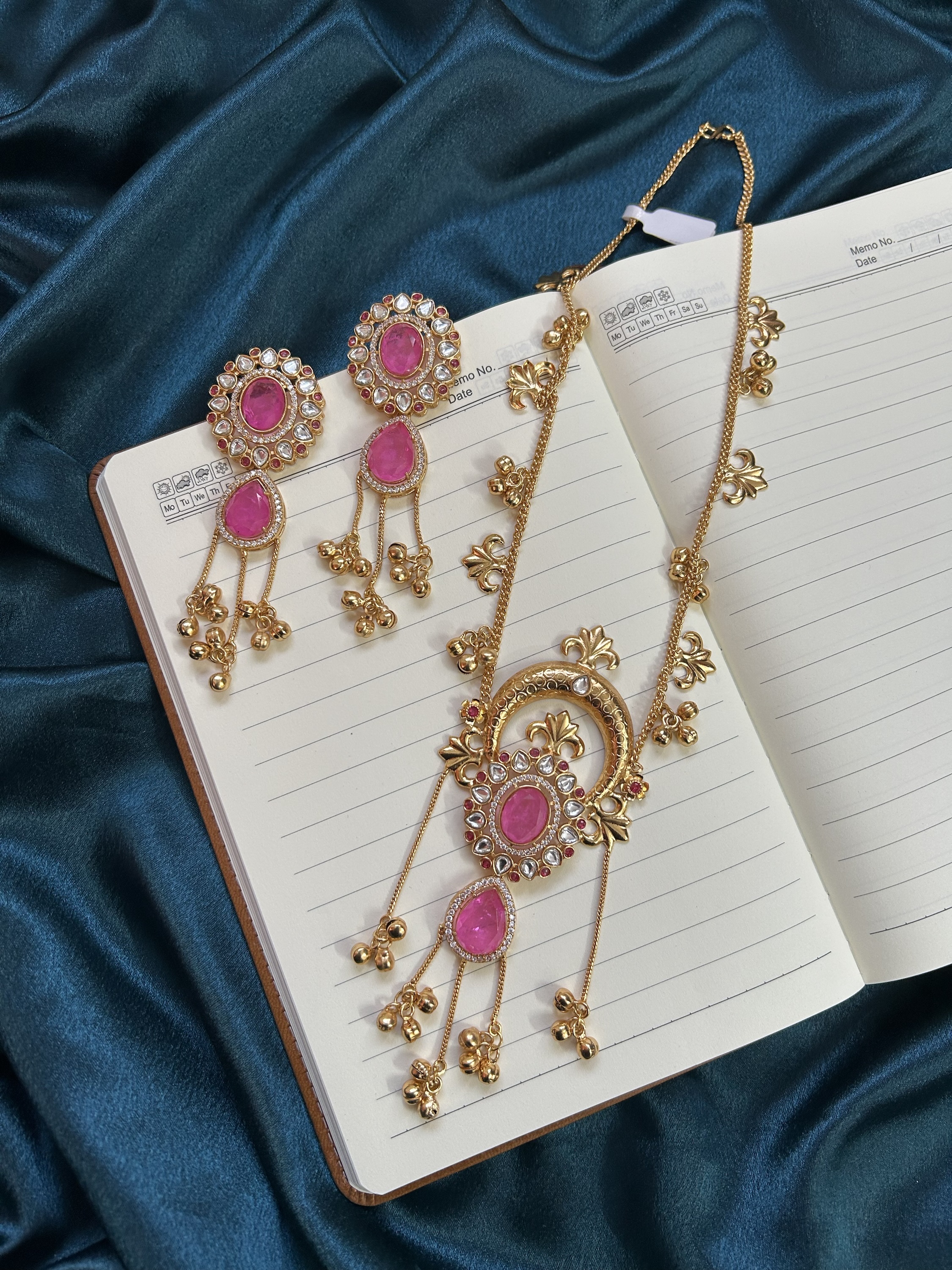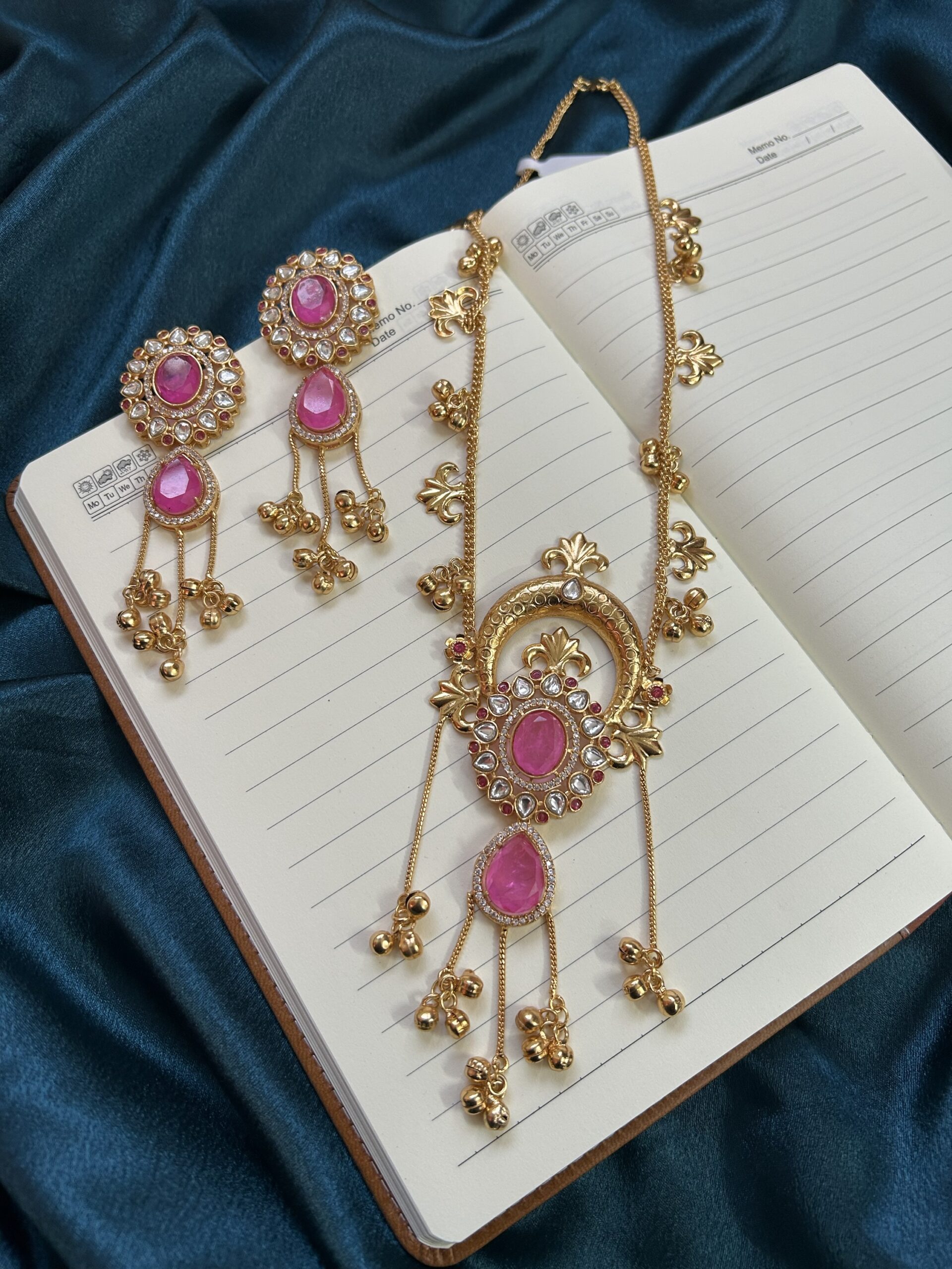 Home Long Necklace Sets Kashmiri Kundan Necklace Set – Pink