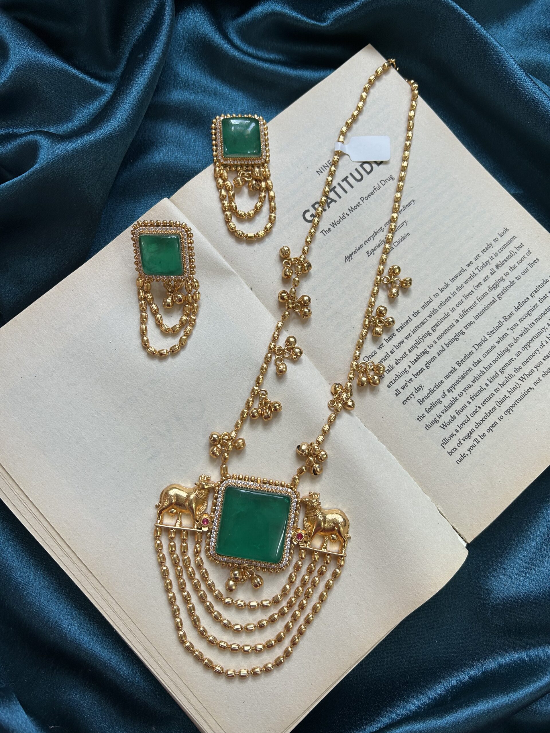 Kashmiri Nandi Necklace Set With Earrings – Green