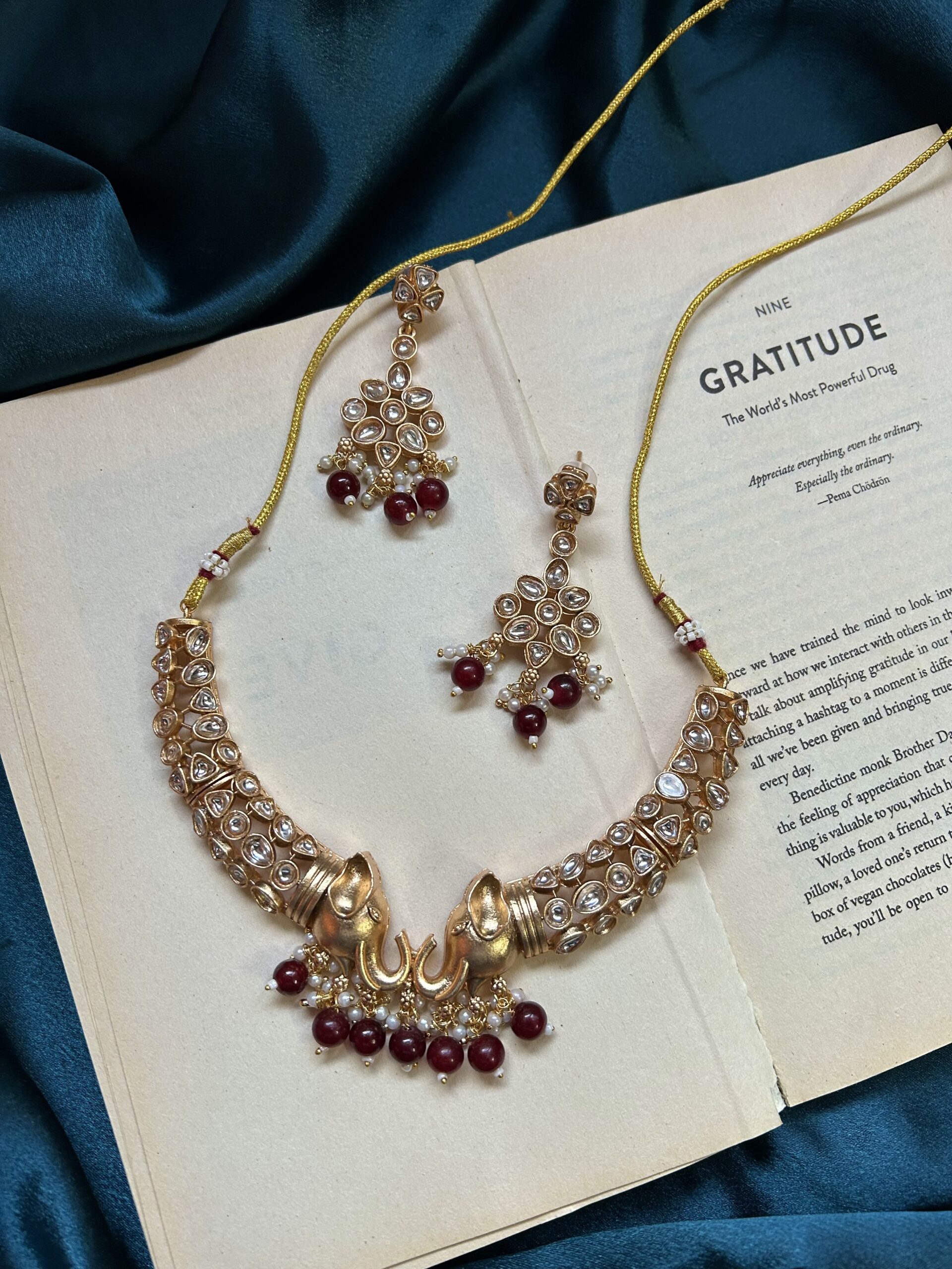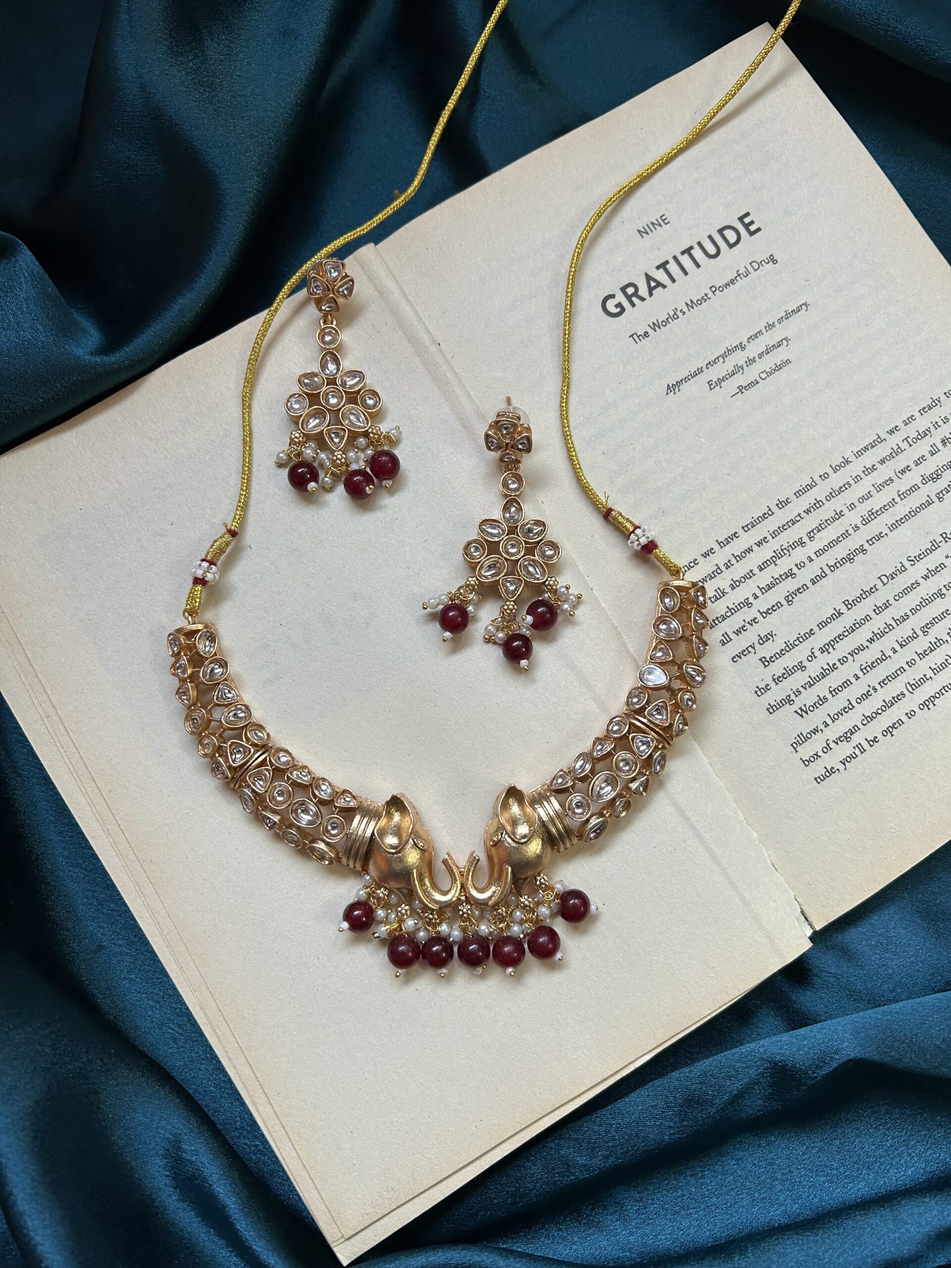 Kundan Elephant Necklace Set With Earrings – Maroon