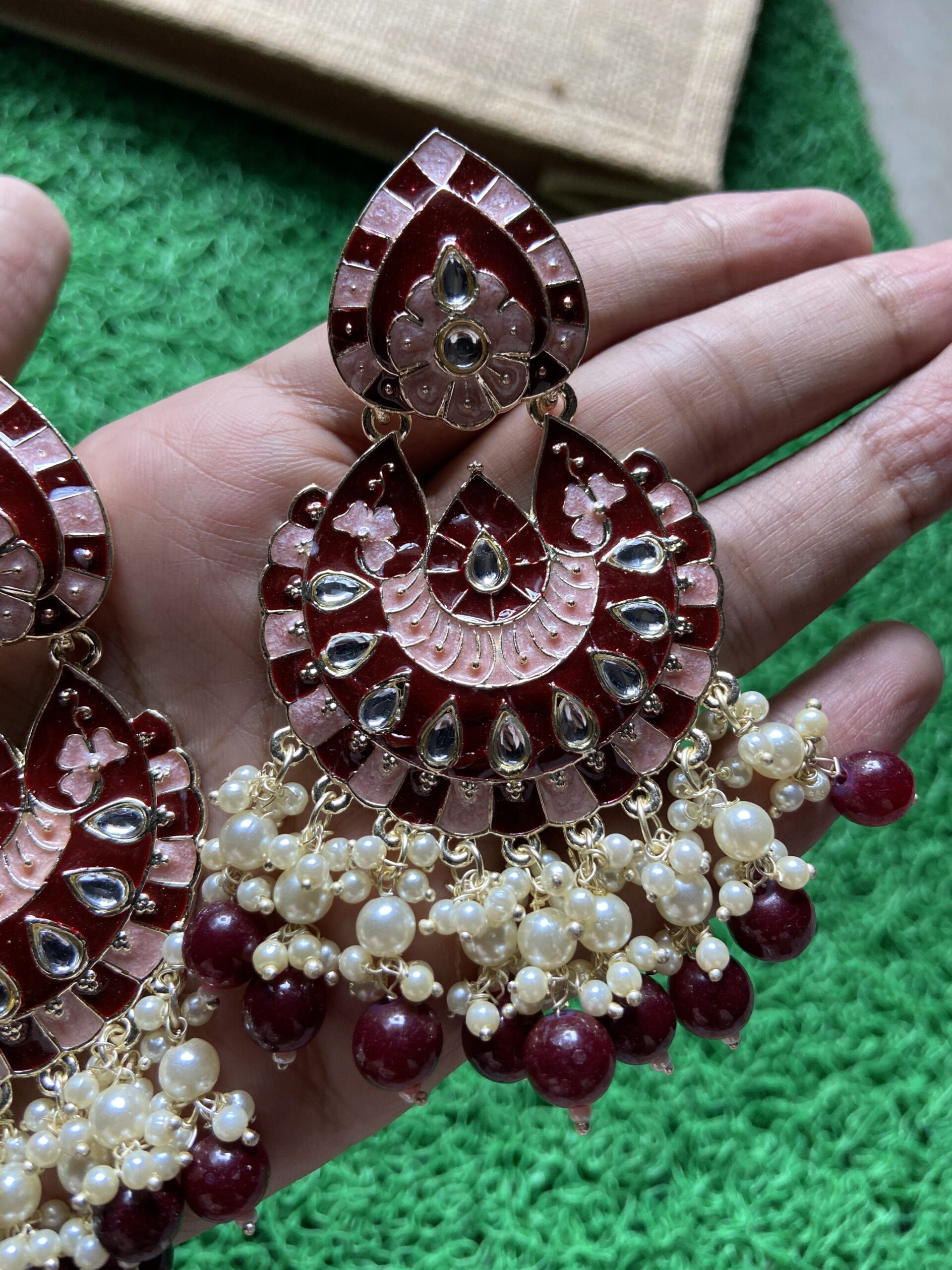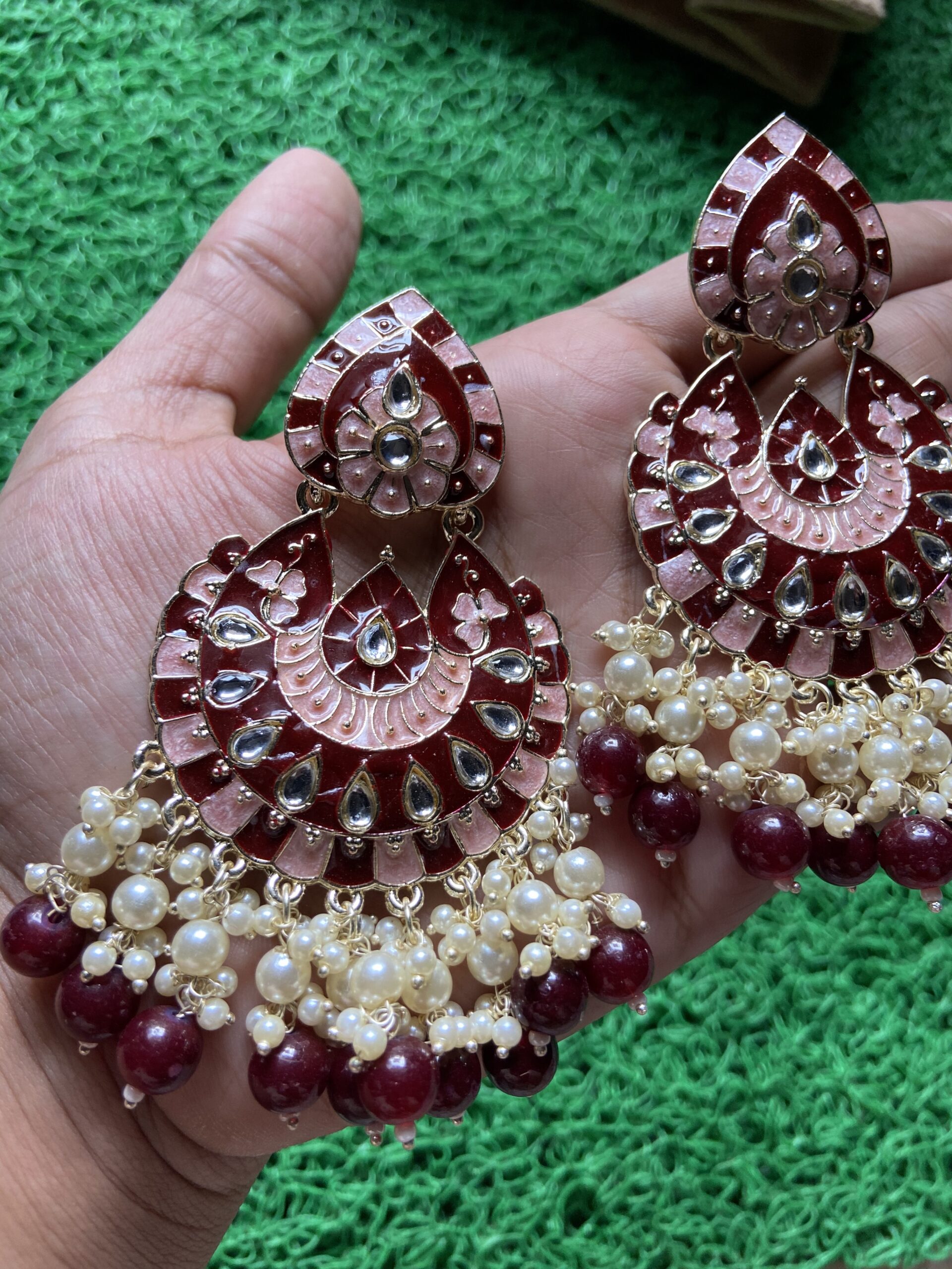 Maroon Meenakari Earrings