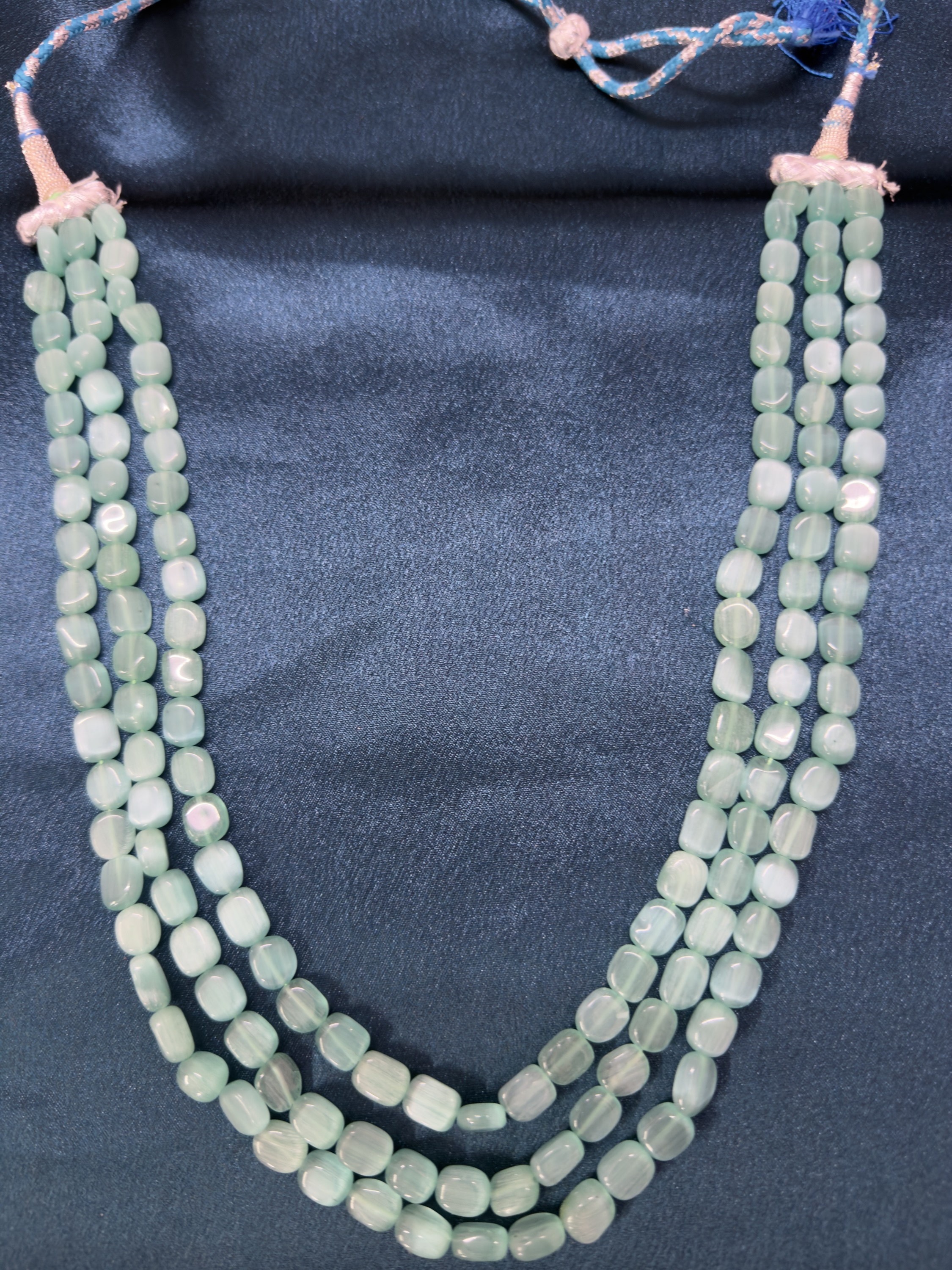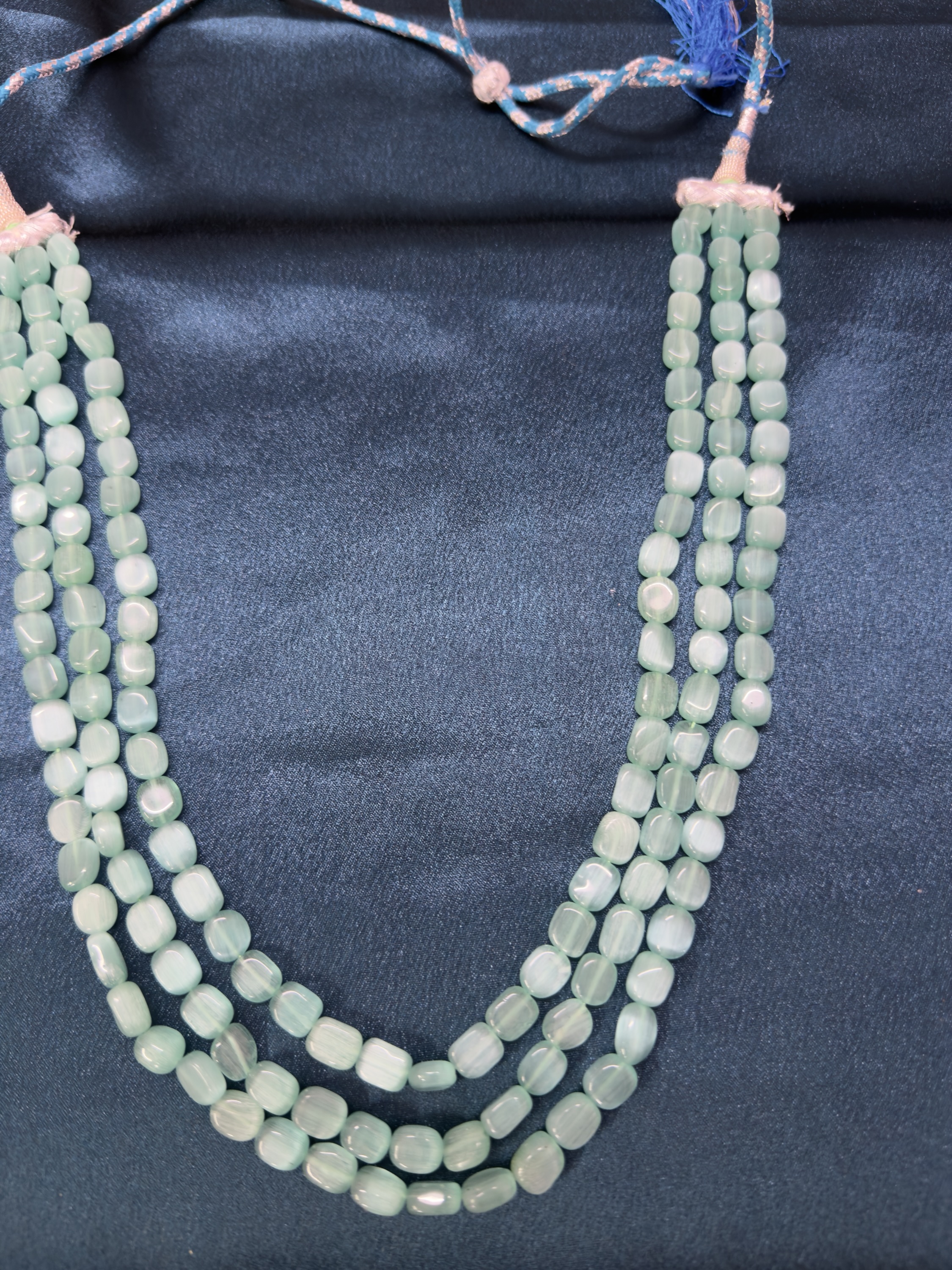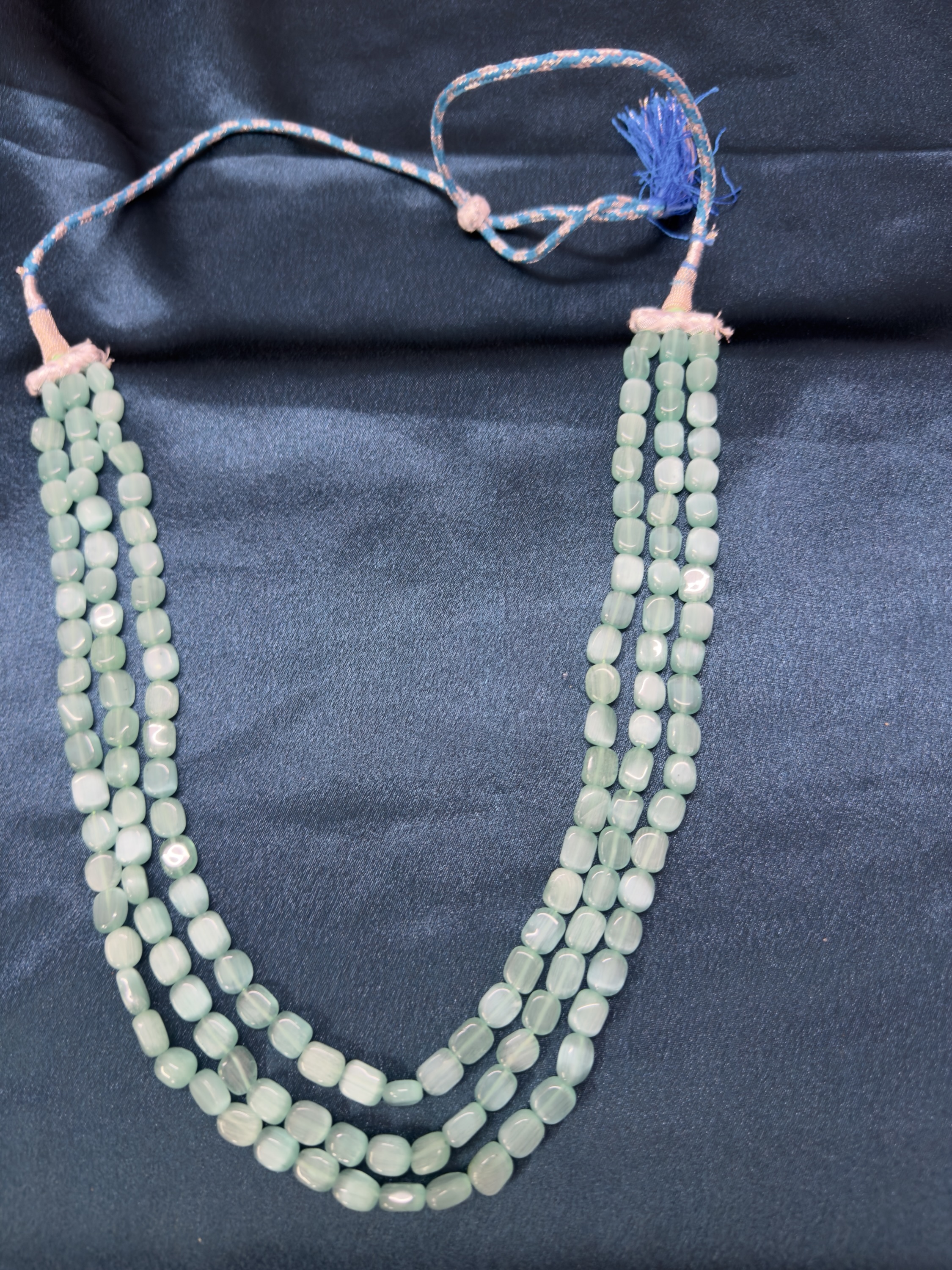 Home Long Necklace Sets Monalisa Stone 3 Line Mala – Mint