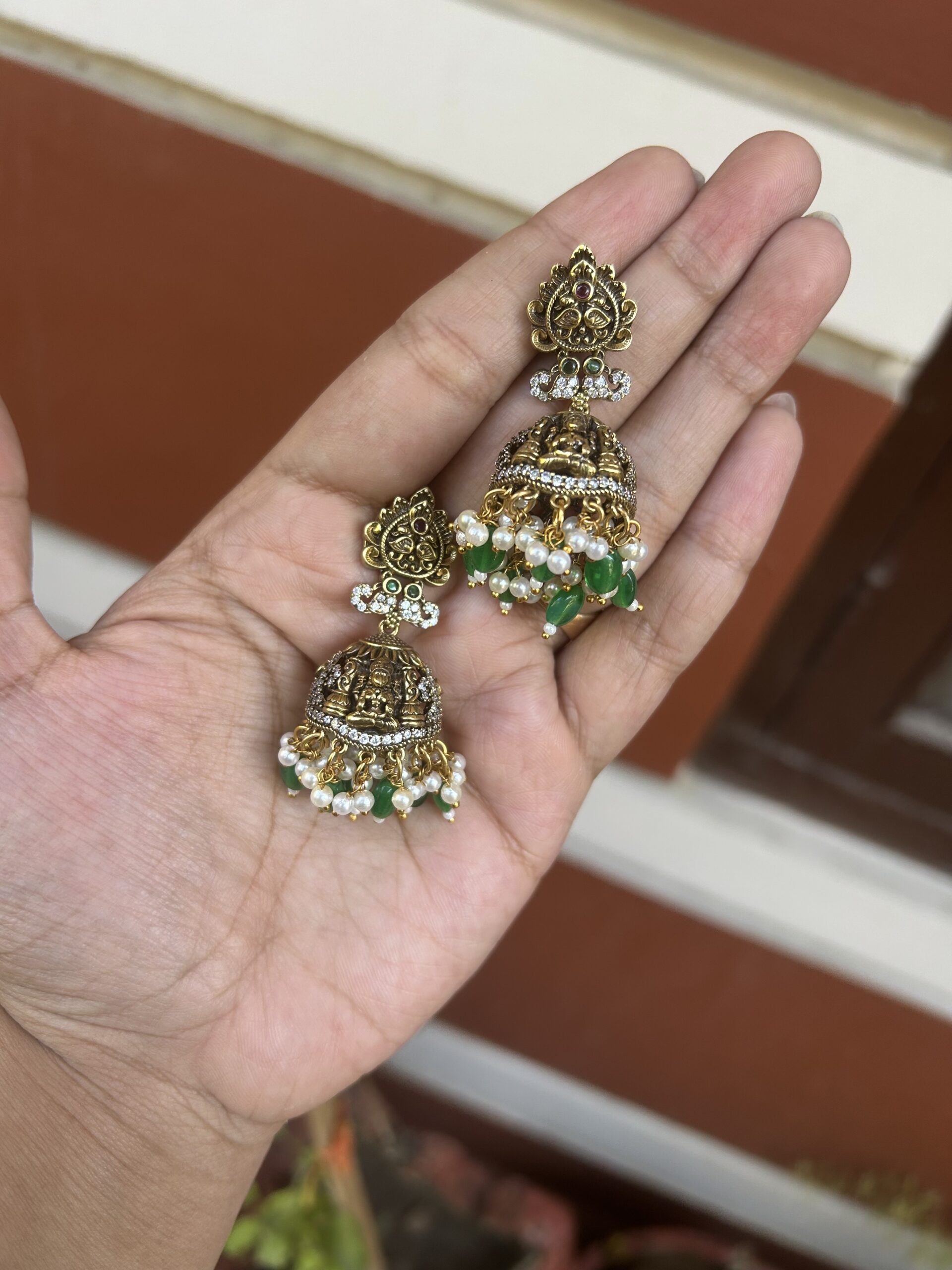 Victorian AD Laxmi Mata Necklace Set With Earrings – Green